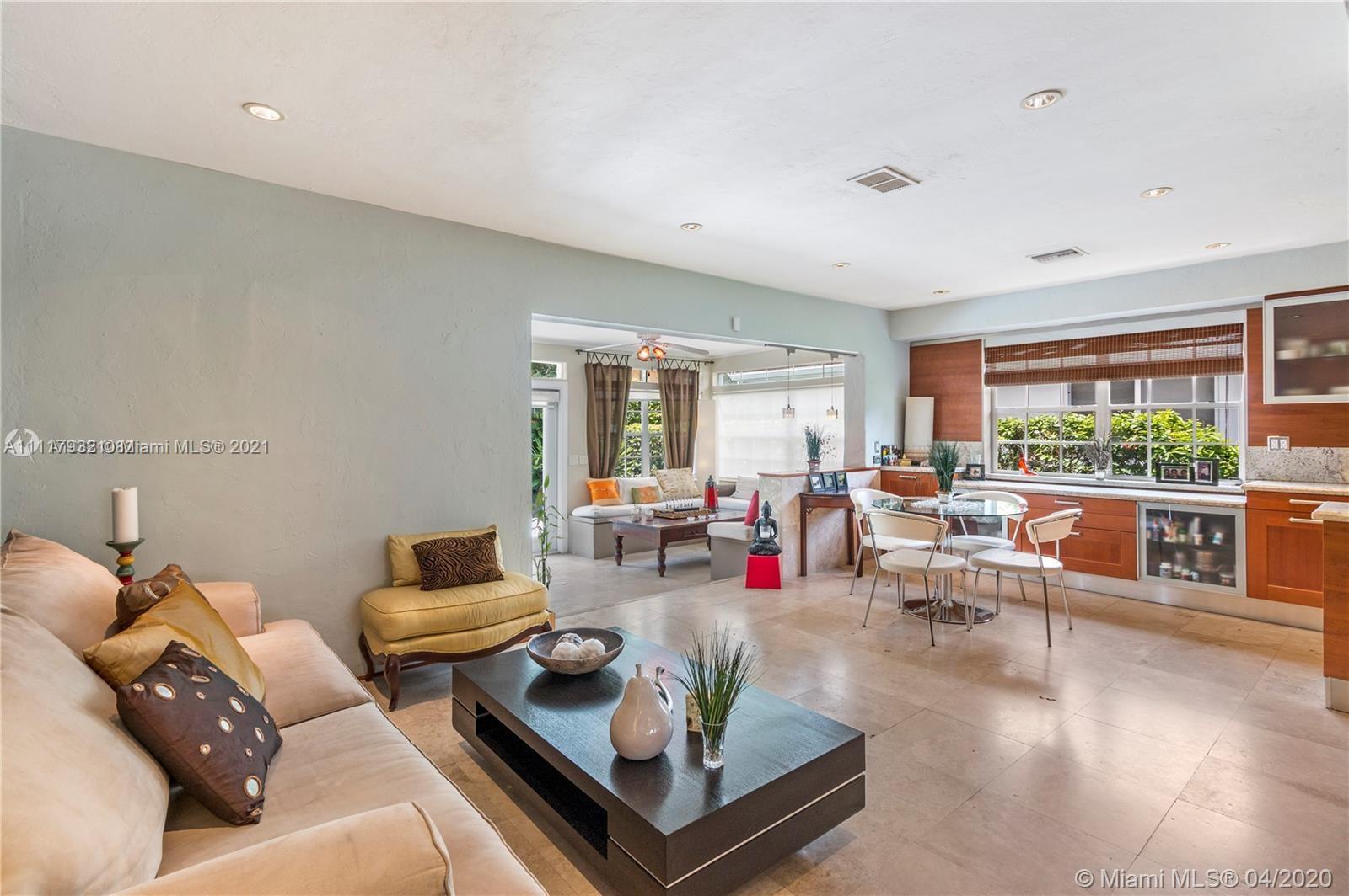 Beautifully renovated 3/2 with original Dade Co. wood floors in living areas, hallway and bedrooms and ceramic tile floors in other areas. Bedrooms have custom floor to ceiling closets with organizers & interior lighting. Master bathroom designed with classic/modern look and guest bathroom with spa like feel. An 1821 s.f. open flow-through design with infinite details, skylight for natural light. Formal Living room, formal dining room, breakfast nook opens to modern kitchen with island and built-in grill. Family room and TV room full of light with windows and French doors leading to cozy foliage patio. Walk to Biltmore hotel, Alhambra Water Tower, and other Coral Gables landmarks. Enc. garage disc.