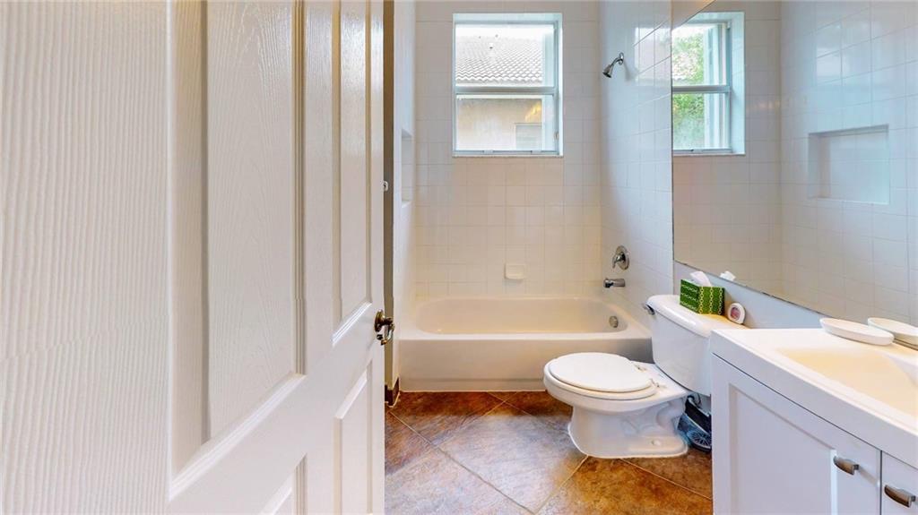 Large and well taken care gem in the Sunset Falls. It is move-in ready with a great backyard to enjoy a day by the pool. 3 Garage spaces and driveway parking. Master bedroom has 3 closets with a separate one for your shoes. This beautiful house has all you need to live confortable each bedroom has a bathroom closely. The kitchen has stylish stainless steel apliances with a double oven. Open concept to a large family room that communicates to a covered screened patio with access to the pool. Perfect for entertaining and enjoying good company. One bedroom and full bathroom in the ground floor.