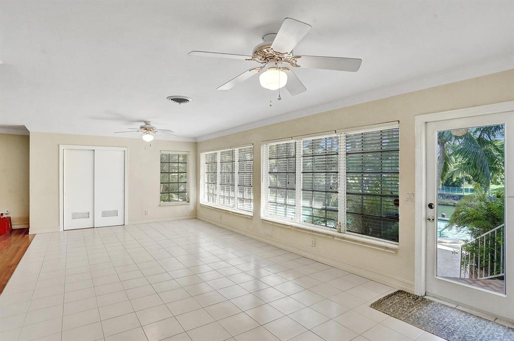 Enjoy your high and dry 3/2 split floor plan on 110 feet of canal water frontage (with ocean access!) with extensive lush, PRIVATE foliage. This property is set on a picturesque block of heavily matured oak and black olive trees creating serene ambiance. This is a great property to make it your own or a large enough level lot of nearly 12,000 square feet to accommodate a 2 story mansion (as you can see others on the block have done). This is not your typical Gables home; large bedrooms and many windows to bring in tons of natural light & enjoy your private backyard & tremendous 9 foot deep, 20x50 lap pool. Original oak hard wood floors, original plaster crown molding, 2 year old ac and tongue in groove hip roof with original 12'' truss. This location has exclusivity, located in the