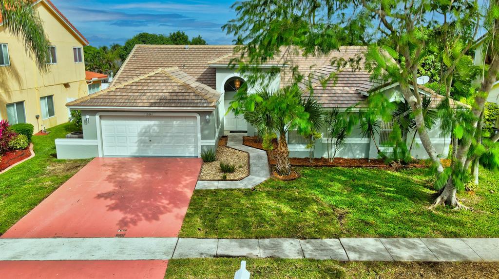 Elegant one story Boca Springs home with double door entrance, vaulted ceilings, formal dining and living rooms, split bedroom plan, PVC fencing, 2 car garage and large screened patio. Improvements include: a brand new $35,000 tile roof installed in 2021 (see attached document), newer AC, freshly painted exterior and interior, and new bathroom vanities/ faucets, kitchen island, Stainless appliances, and exquisite wood kitchen cabinets . This is the home you have been waiting for! Low HOA fees, community pool, tennis, playground, basketball court, and top Boca Schools.