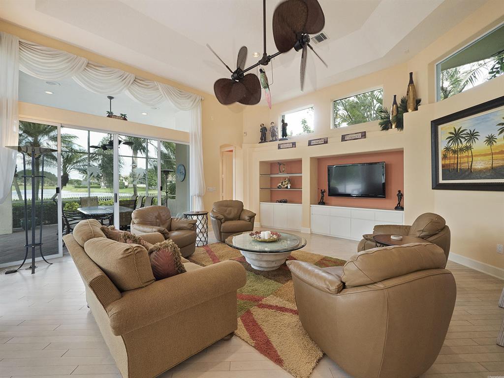 Ibis Estate Home with Spectacular Water & Golf Views! Double Lead Glass Doors greet you as you enter the Marble Floored Foyer & immediately notice the View! On either side of the Foyer are matching Stained Glass Panels offering privacy to the Dining Room & Den. Light Wood-Tile covers the main Living Areas. The Den also has Wood-Tile. Most rooms have Knockdown Finish Walls. The Living Room boasts a Custom Mirror which reflects the light coming from the large rear windows. A Wet Bar separates the Living & Family Rooms. The Kitchen boasts Granite, a Jenn Air Cooktop, Bosch Dishwasher, Double Ovens, Built-In Microwave, & Sub Zero Refrigerator. Roof replaced in 2016. This one is not to be missed.