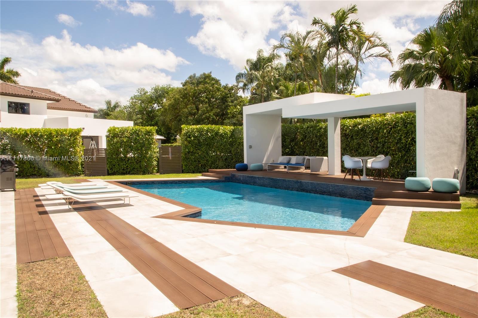Golfer's Dream! Drive your golf cart to the Famous Blue Monster. Stunning and modern house remodeled in 2016. Located in Doral Estates, a prestigious community at Trump National Doral Golf Community. Unique Community in Doral, One of a kind. This modern house features 6 bedrooms, 6.5 baths, customized Italian kitchen, top of the line stainless steel German appliances (Wolf and Subzero), quartz countertops, hard wood flooring throughout, high impact windows. Three bedrooms upstairs, each bedroom has its own terrace and bathroom. Large walking closets. Three bedrooms downstairs, two of them with their private bathrooms. Appealing pool and patio area for relax and family-friends gatherings. Customized driveway able to fit up to 10 vehicles .