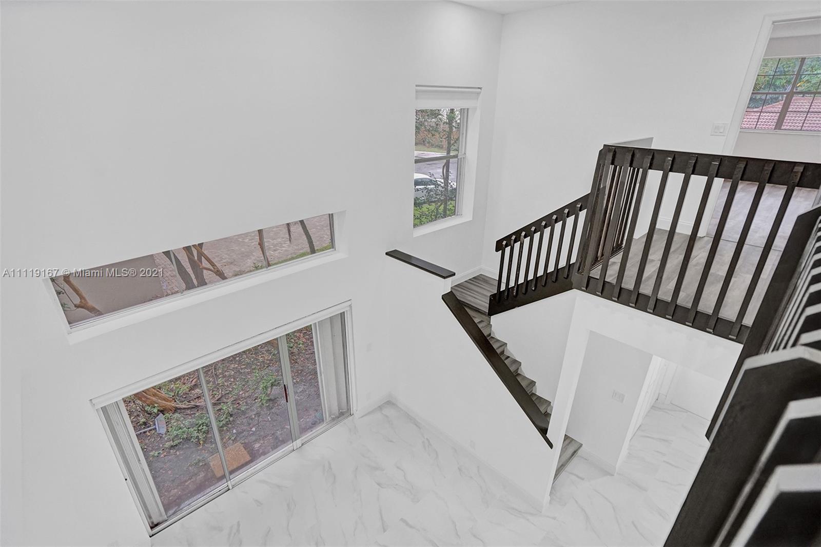 Spacious and bright 3 bedrooms with a den (can easily converted to a 4th bedroom) 2.5 baths and a 2 car garage home in Bridgewater situated on a quiet cul de sac block. Completely renovated - all new porcelain tile on the first floor and luxury waterproof vinyl plank flooring on all of second floor and staircase. Quality white kitchen with beautiful quartz counters and stainless-steel appliances. Vaulted ceilings. New interior paint, new baseboards, smoothed ceilings. New LED's lighting throughout. Newly renovated bathrooms. Washer/dryer. Walk-In closet, ceiling fan. Screened in patio. Accordion shutters throughout. Completely fenced yard. HOA fee includes lawn service, cable, community pool, and play grounds. Great location, convenient to shopping and major roads and highways.