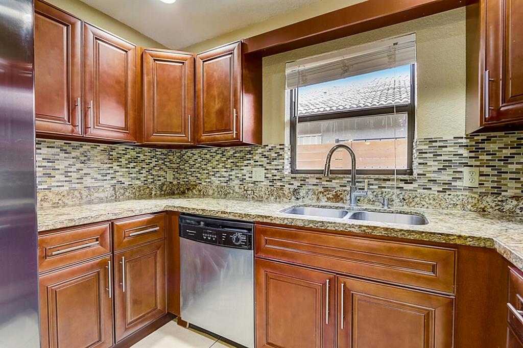 This Pompano Beach one-story home offers a patio, granite countertops, and a two-car garage.