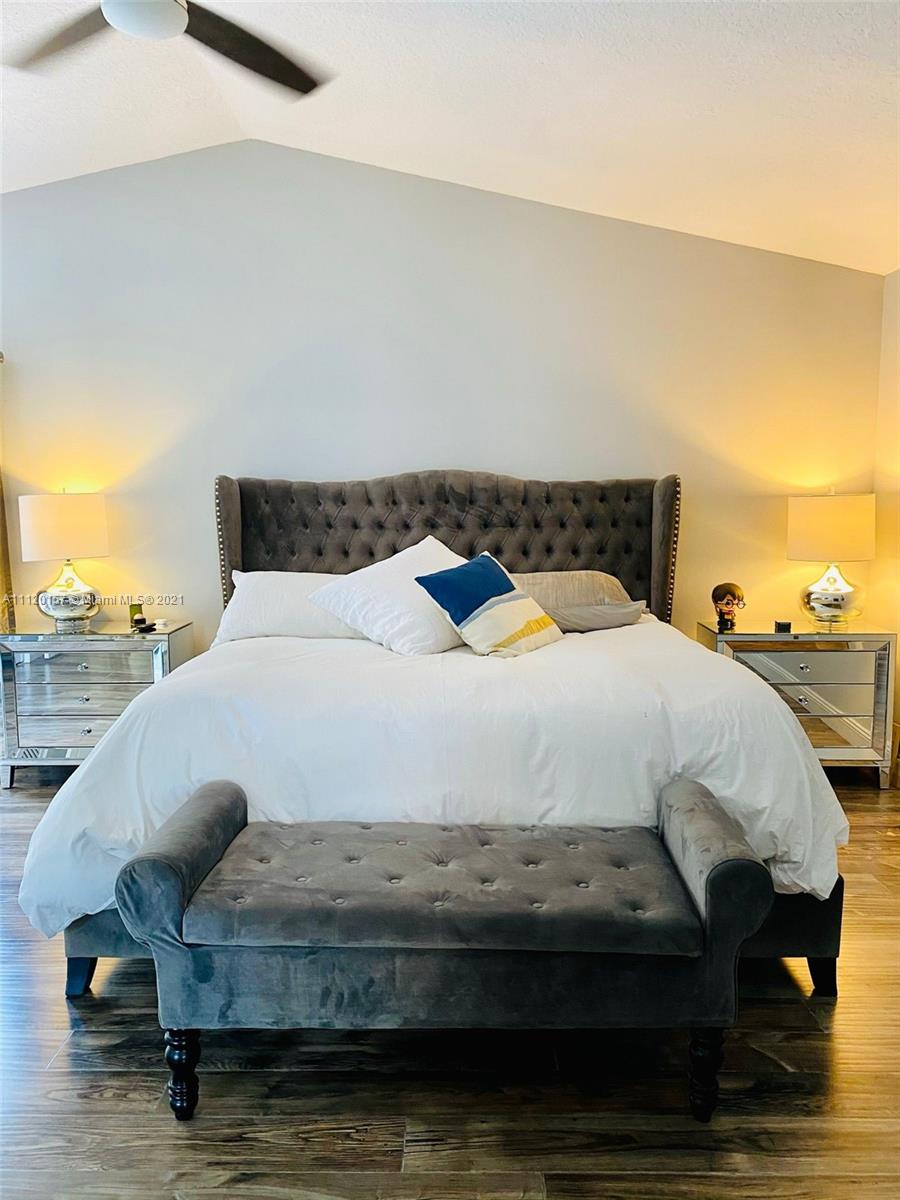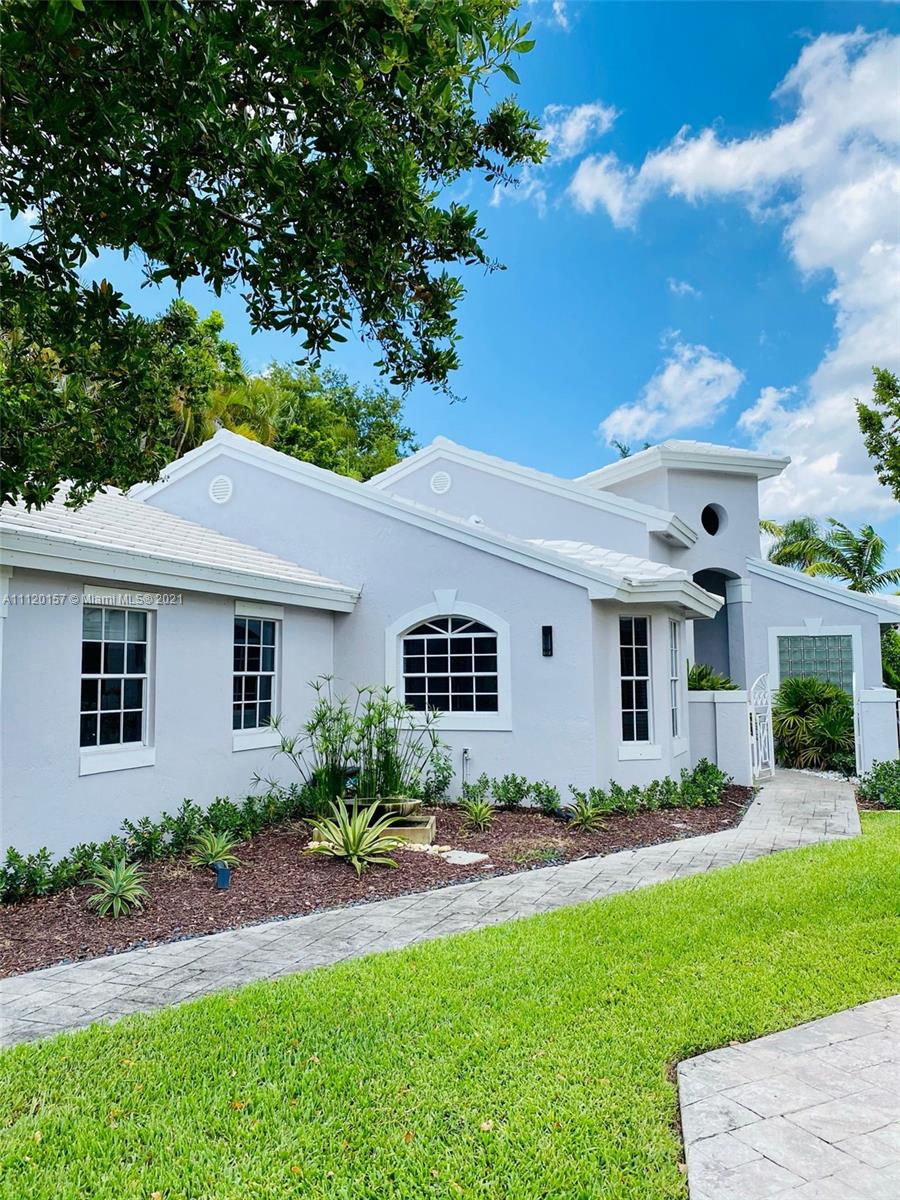 REMARKABLE 2/2 SINGLE-FAMILY HOUSE LOCATED AT DESIRABLE GRAND PALMS!! THE PROPERTY HAS BEEN TASTEFULLY REMODELED! 2019 ROOF, NEWER A/C, UPDATED AND MODERN KITCHEN WITH STAINLESS STEEL APPLIANCES!! AMAZING OPEN FLOOR PLAN WITH WHITE PORCELAIN FLOORS THROUGHOUT MAIN AREAS AND LAMINATED WOOD IN THE BEDROOMS! BEAUTIFUL MASTER BATHROOM WITH SEPARATE BATHTUB AND SHOWER. WALK-IN CLOSETS, SECOND BATHROOM BEAUTIFULLY REMODELED! STUNNING PATIO WITH LUSH LANDSCAPING, BEAUTIFUL POOL WITH RELAXING FOUNTAIN AND MODERN LED LIGHTS FOR THE NIGHT, LOVELY TERRACE AND MORE PERFECT FOR ENTERTAINMENT!!PLENTY OF LIGHT FROM EVERY CORNER!THE PROPERTY WAS ORIGINALLY A 3/2 THAT CAN BE EASILY CONVERTED BACK AND ONE PART OF THE GARAGE HAS BEEN BEAUTIFULLY CONVERTED TO A DEN/OFFICE OR ROOM. MUST SEE TO APPRECIATE!!