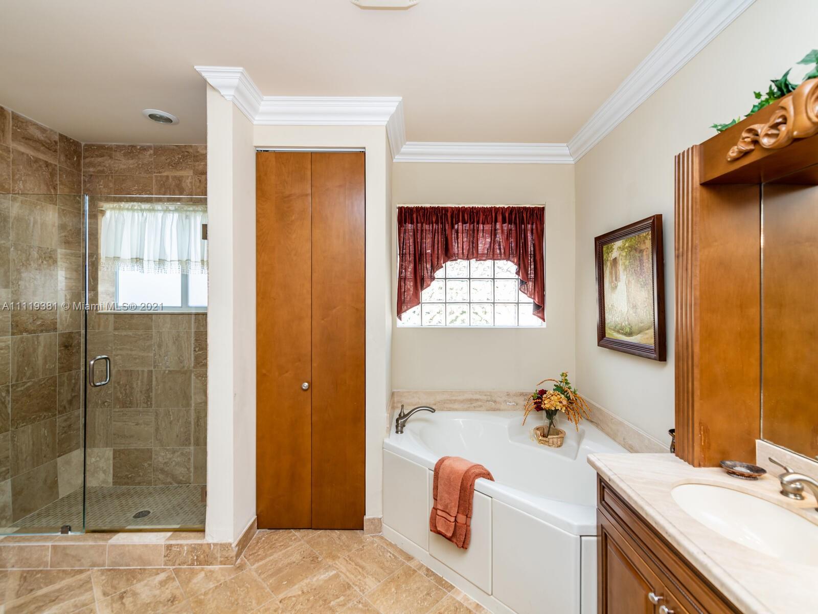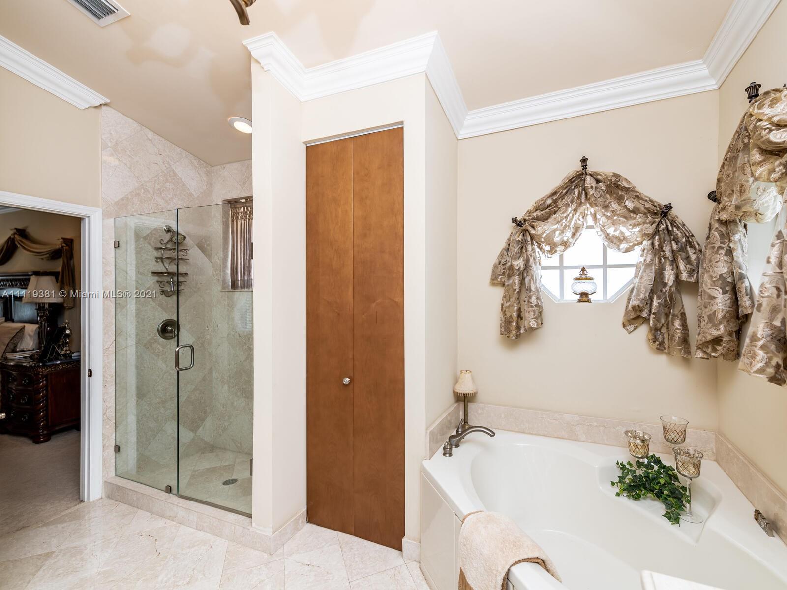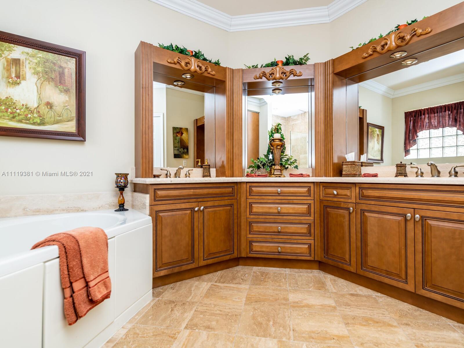 Deal fell apart due to illness....Exquisite home situated on the best lot on the block! This is a small enclave of 23 homes. The original owner has maintained her home with the upmost care plus much love which shines throughout. Interior features 5 bedrooms*4 bathrooms*3 up and 2 down* 2 masters bedrooms and sitting area*custom closet cabinetry*top quality ceramic wood look floor throughout main living area*Gorgeous carpeting with a beautiful soft pattern*tray ceilings*crown molding even in the bathrooms*office/den*wood cabinetry in kitchen & b-rooms plus granite counters*impact windows*french doors. Exterior features: Open covered patio overlooking pool with raised spa*fenced yard*s-tile roof*very private location*great curb appeal*north/south exposure