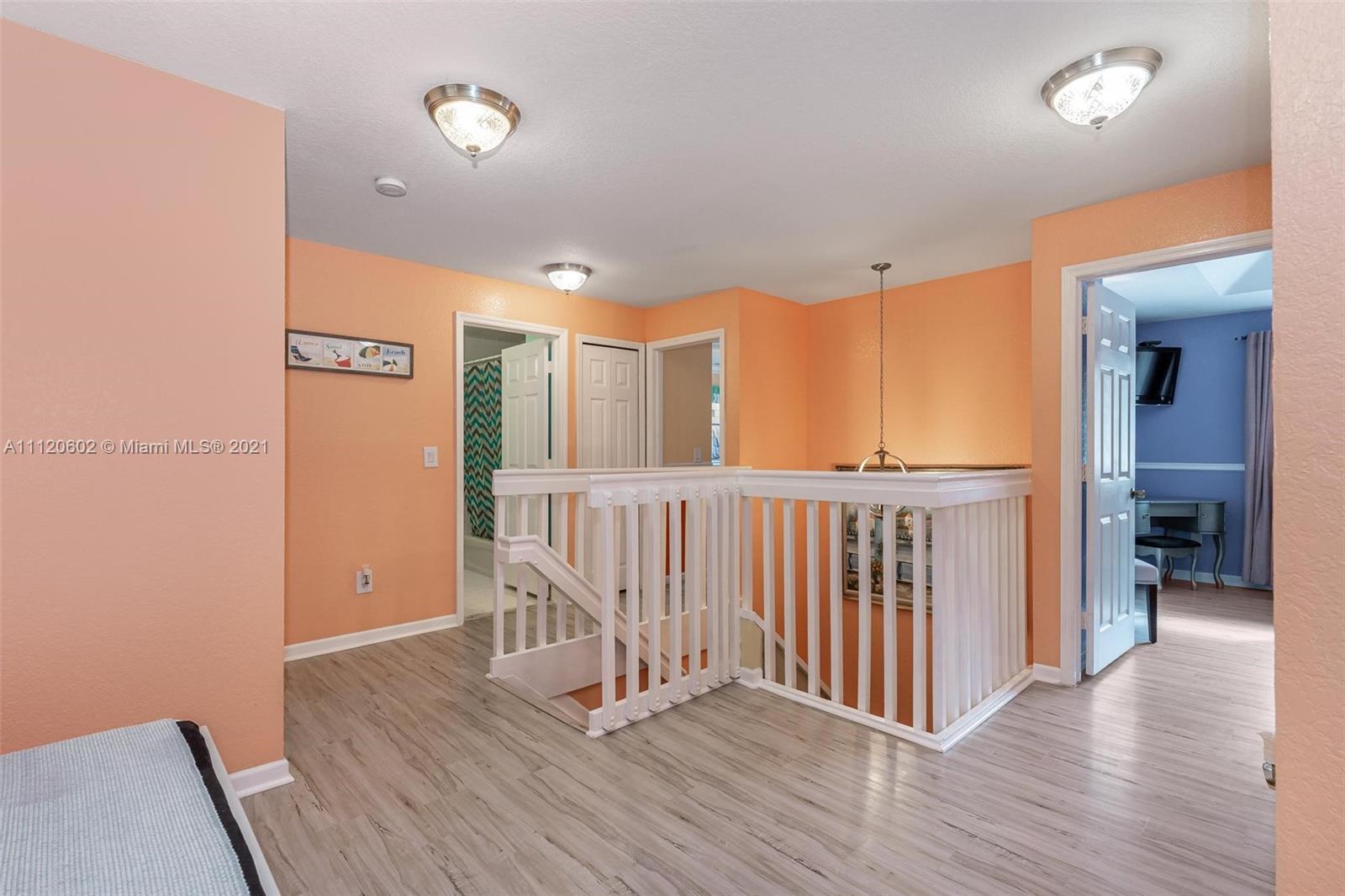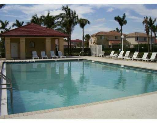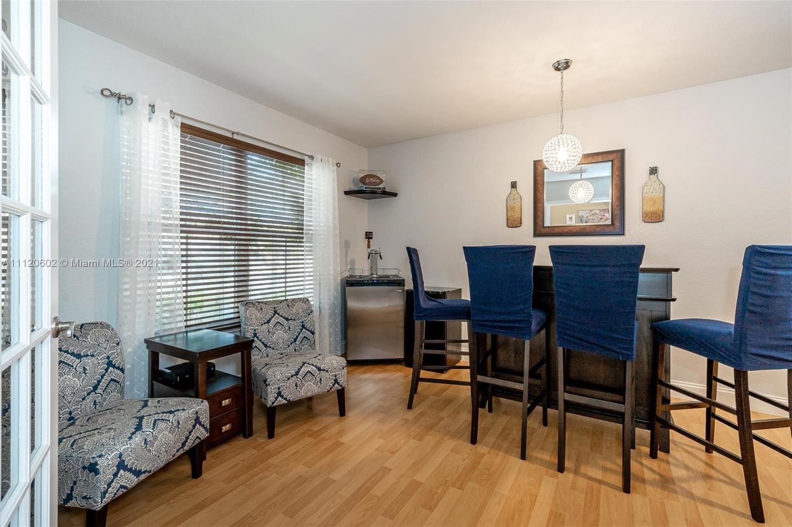 This is ONE IN A MILLION! 4 bedroom, corner unit with TONS of upgrades and special features. (the corner unit gets extra windows for lots of natural lighting) The living room is enclosed to create the most cozy & fun bar & TV area. Large family room sits off the kitchen with a breakfast area AND snack counter. Kitchen has white cabinets, granite & stainless package. Pretty laminate flooring. Nice sized master bedroom & bath with dual sinks and walk in closet. The exterior patio is huge, its like another living space. Covered, tiled & fenced for lots of privacy. This home sits next to the extra guest parking for convenience. Guard gated community with pool & play area. EXCELLENT Davie schools. Easy assess to highways & Sawgrass Mills Mall. Walk to Publix! Shutters & rated garage door.