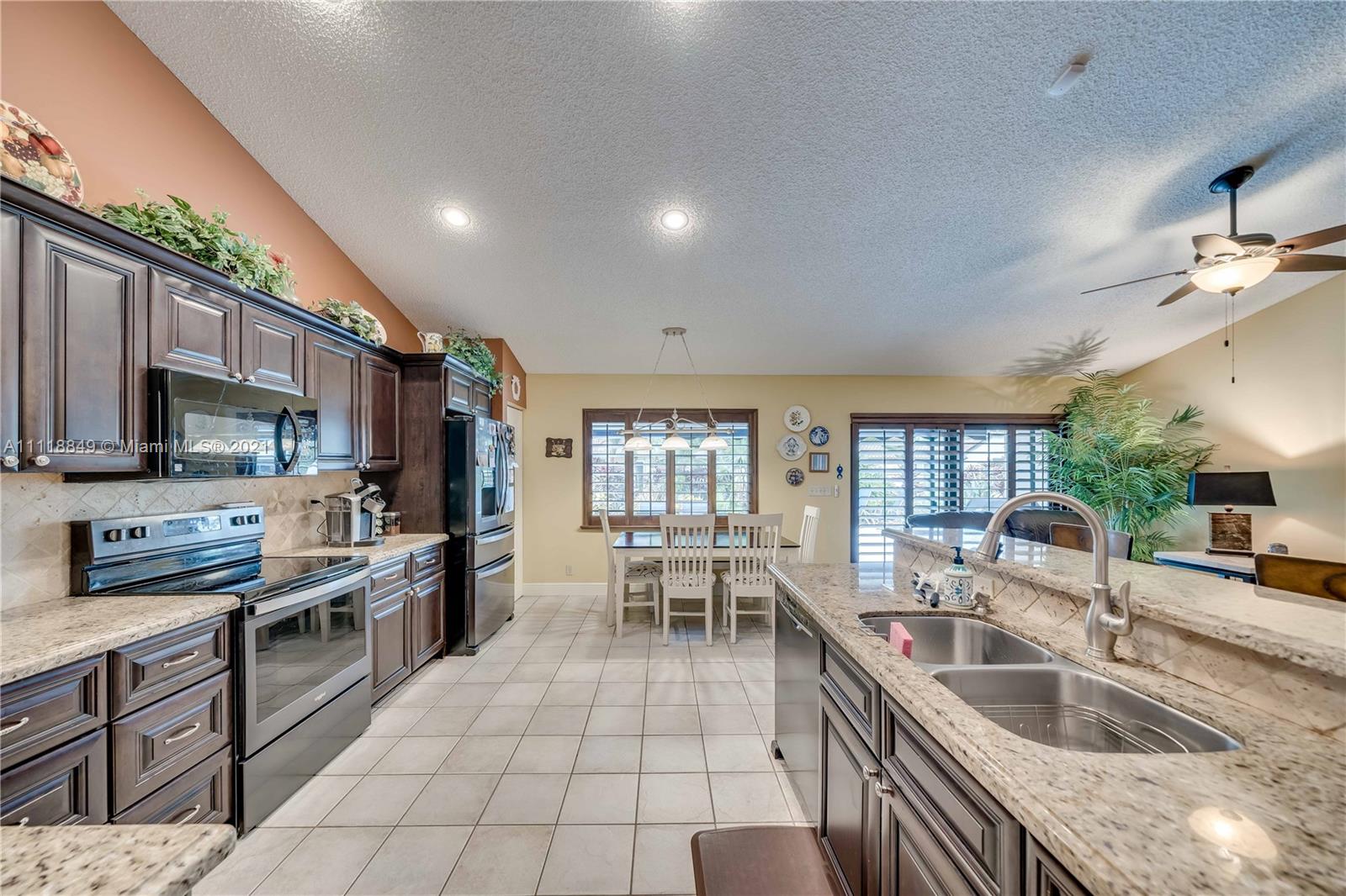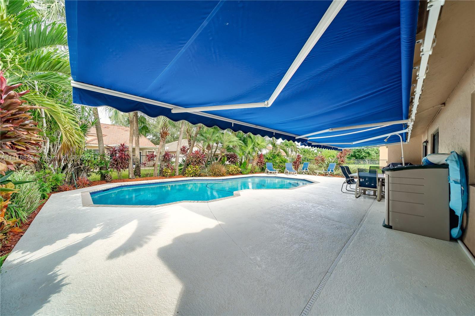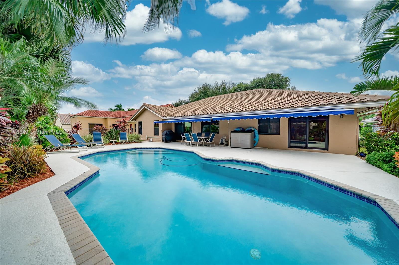 Fantastic 4 bedroom 2 bath pool home in Forrest Ridge!! Brand new Impact Glass windows & doors! Roof 2014. Kitchen features dark wood cabinetry, granite counters, tile backsplash, new appliances, & pantry. Plantation shutters. Open floorplan w/ vaulted ceilings. Split bedroom layout. Tile flooring throughout main living areas & wood flooring in the bedrooms. Indoor laundry room. Both bathrooms are updated. Master has double vanity, tub & shower w/ frameless enclosure. Oversized lot. Beautiful landscaping. Large pool w/ salt chlorinating system. Electric, retractable awning providing great coverage. 2013 AC. A Rated Davie school district! Quick walk to Silver Ridge Elementary! Community features mature oak trees, sidewalks, tennis courts, preserve/ridge, trails & so much more!