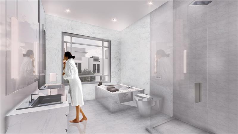 No expense spared on these 2021, modern townhomes 3 & 4 bedroom w/ rooftop and solarium, terrace and patios overlooking Holiday Park's spectacular greenery, private elevators (in select residences), ready-wired for smart-home systems, LED lighting, floor-to-ceiling, energy-efficient, tinted impact windows, laundry room, marble, tile, and durable laminate flooring, marble and granite kitchen, stainless appliances, private garage, Toto toilet/bidet in master, large capacity washer/dryer & more!