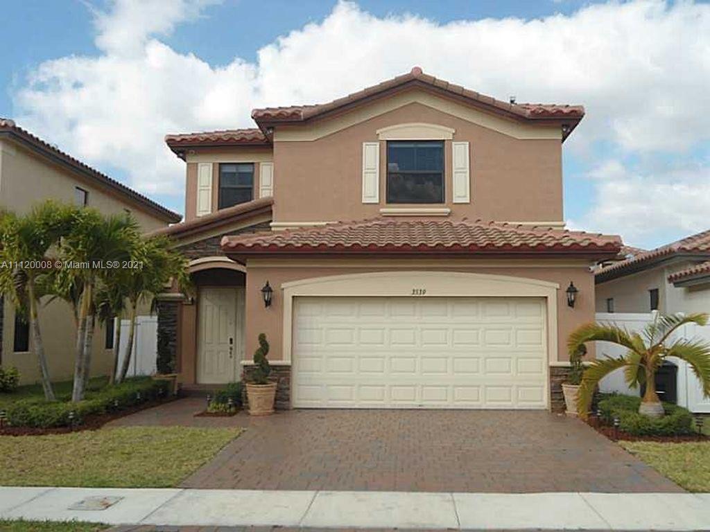 Beautiful 3-bedroom 2.5-baths,2-story home with 2-car garage.Offers 48x48 Porcelain Tile throughout the 1st floor and Wood Flooring on the 2nd Floor. A Foyer, Living/Dining Room, Family Room, Breakfast Area, Brand New Kitchen with 42" Wood Cabinets, Huge Quartzite Island, Stainless Steel Appliances, Patio with Pavers, Beautiful Tropical Landscaping. The 2nd floor has a spacious Master Suite, along with 2 Bedrooms, access to shared bathroom with dual sinks, vanity and tub. Both Bedrooms offers wall to wall closets, along with Master Bedroom having a his and hers Walk In Closet. The master bathroom features a his and her vanity, glass enclosed shower and Roman tub. Home has Security Cameras System, 4 Spot Lights, Black out Shades throughout the upstairs, and Wood Blinds throughout the house.