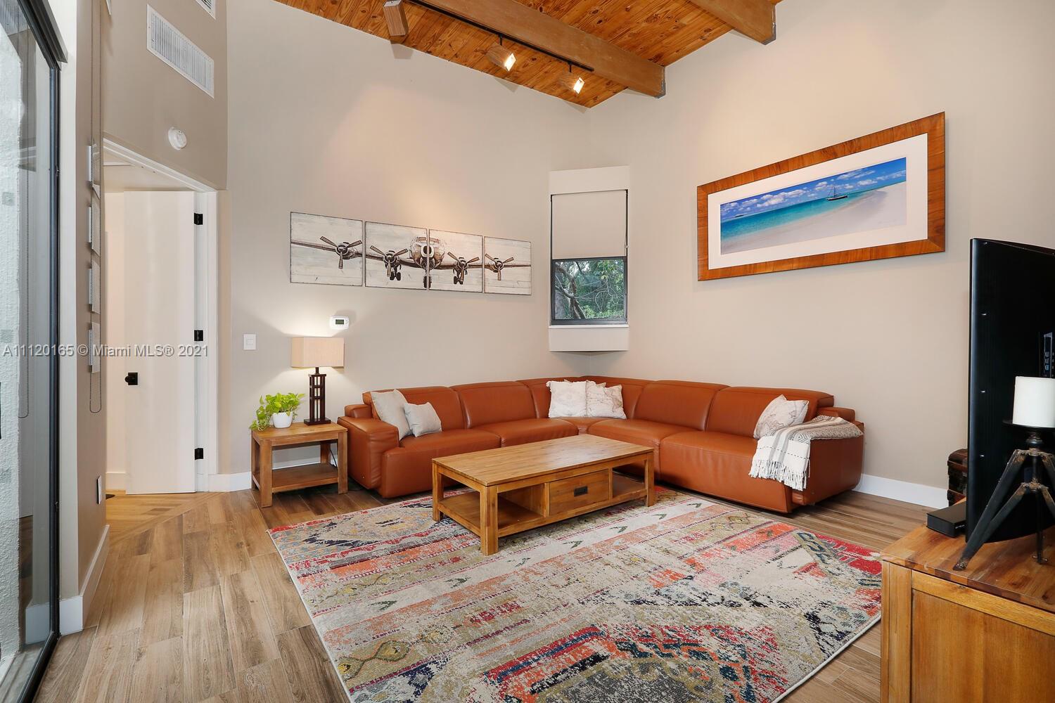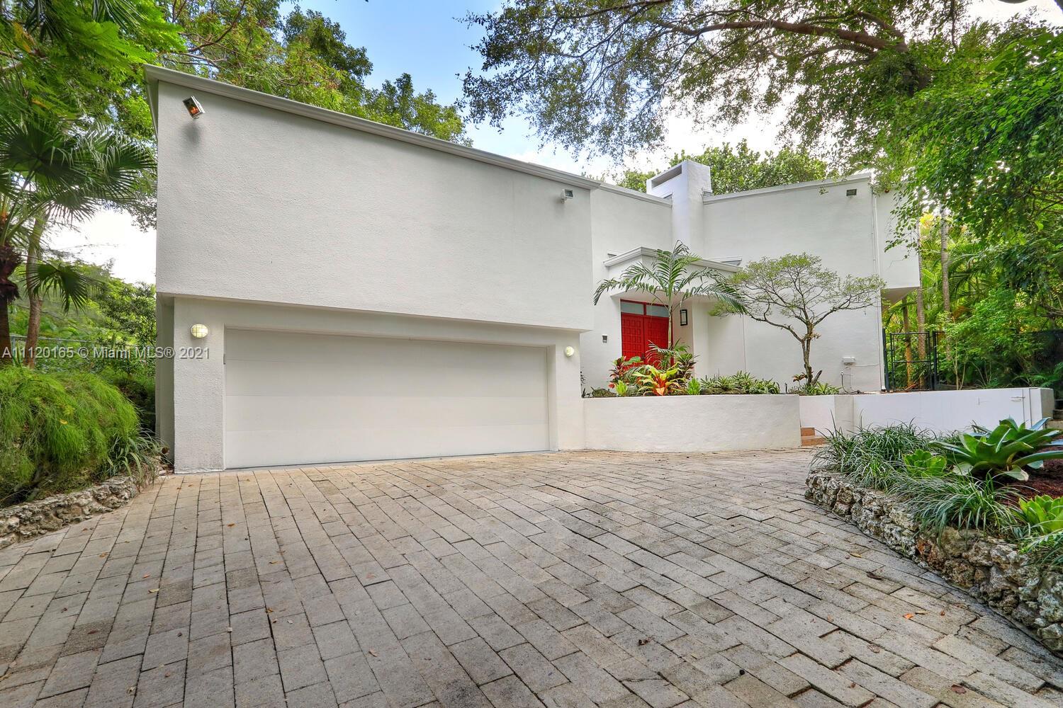 Unique modern-style home designed by the renowned architect, Hernando Acosta. Surrounded by lush tropical garden & set high on the Silver Bluff Ridge (22 ft. above sea level). The impressive, gated entry is framed w/massive coral rock formations & opens to a bricked motor court. Light-filled interior spaces w/ high, wood-beamed ceilings overlook the expansive double-height screened terrace for year-round outdoor living & entertaining. New custom kitchen (2017) features lacquered wood cabinetry, quartz countertops, high-end appliances & large center island. Recent updates: 2 new HVAC systems, water heater, wood-plank style porcelain tile flooring, updated bath & impact glass throughout the home. Additional features: fireplace, wine cellar & 2CG. Walk to bayfront parks & the Grove village.