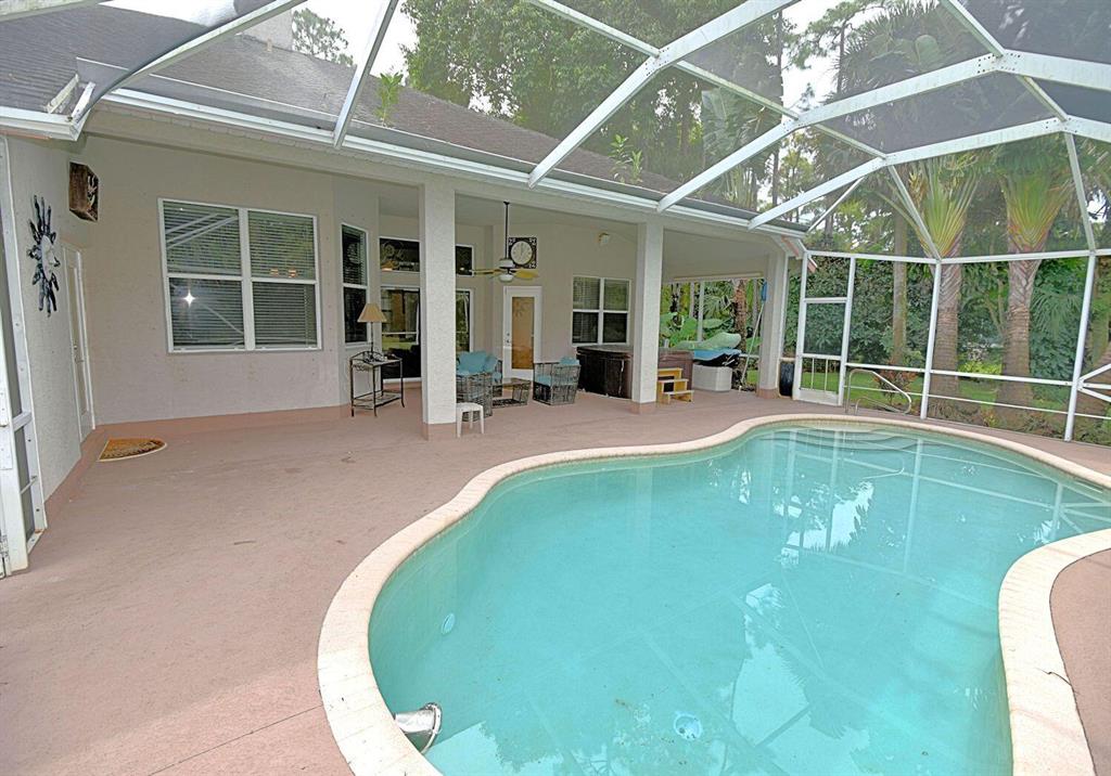 Rare opportunity for newer home on 1 ac in town. This lovely pool home has high volume ceilings, tile floors and 3 large bedrooms + an office (4th bedroom in summary) or study and huge family room in addition to the living room. The spacious living room features a fireplace and tremendous views of the screened pool and treed yard. The kitchen is open to the family room and dining room for ease of entertaining. The main bedroom is large with two walk in closets and separate shower and jetted tub. Tile and laminate floors with carpet in the main bedroom. Large laundry room and oversized garage 24 ft x 22 ft with extra storage above. 86 ft long driveway for plenty of parking. Make offer. Ready for your personal touch.