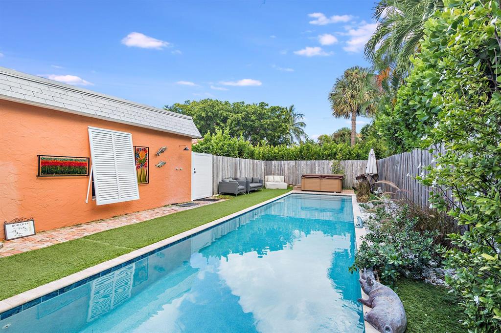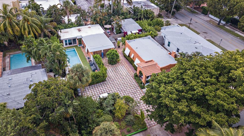 Large Flamingo Park Compound! Wonderful 1925 Hansel Hall home with 2 guest cottages on a large 10,795 sq-ft lot. The 2BR/1BTH main home features a beautiful open-air porch that opens into the living room with hardwood floors throughout. The living room leads into the formal dining room and kitchen with a full pantry & utility room with washer/dryer. The first guest cottage is a 1/2 and features tile flooring throughout, large living area, central & mini-split A/C, impact windows, pool access, washer/dryer, and vaulted bedroom ceilings. The second guest cottage is an efficiency with kitchen, mini-split & window A/C, full bath, washer/dryer, and private yard space. Close proximity to Palm Beach Island, Rosemary Square (CityPlace), Grandview Warehouse District, and Palm Beach Island.
