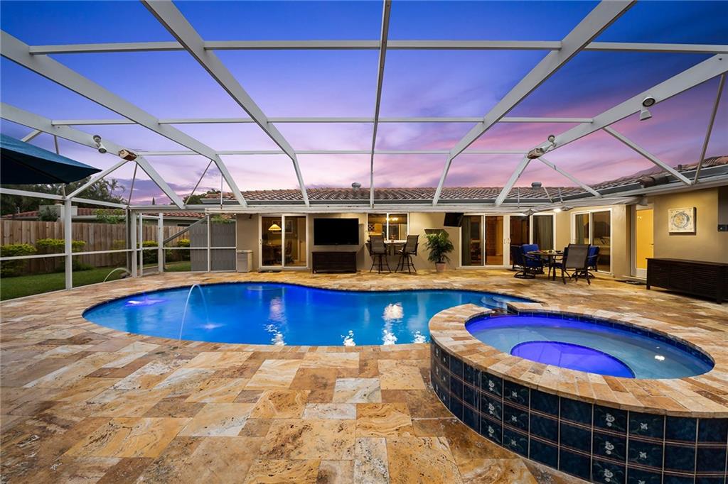 Welcome to the highly desirable Imperial Point. This spectacular single story home boasts 3 bedrooms, 2 bathrooms, long Chicago brick driveway & 2 car garage. Meticulously landscaped with privacy gate and Koi pond at entrance: the curb appeal is like no other. Spacious family room and kitchen overlook sprawling, screened-in Travertine patio with heated salt water pool, spa, outdoor shower, and fenced-in yard. Galley kitchen with stainless steel appliances, wood cabinets, granite countertops, breakfast area. Built-in cabinet storage in laundry room & garage. Master suite has access to the pool from bedroom slider and bathroom cabana door. Roof 2009, AC 2010, impact windows & doors (front door with panels). Close proximity to Westminster Academy & Pine Crest Private Schools, shops & beaches!