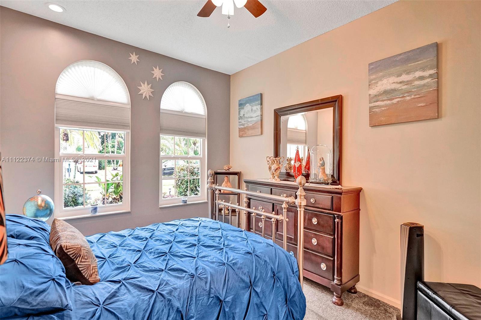 Beautiful home in highly desirable Boca Greens Country Club! A pay for play 18 hole course! Large 2,439 sf home is a short walk to shopping, restaurants, and houses of worship. 3 bed/3 1/2 bath, 2 car garage + golf cart garage, pool home features pool views from almost every room and impact windows and doors throughout the whole house. Upgraded kitchen with quartz counter tops, top of the line appliances, built-in wet-bar that connects to your counter/bar outside. Cabana bath with shower. Eat-in breakfast area with pool views. Formal dining room. Vaulted ceiling. 2 master bedrooms! First master has 2 closets, large shower and sunken tub. 2nd master has a fully upgraded bath with shower, walking closet. Enjoy relaxing daily by your beautiful screened in pool.