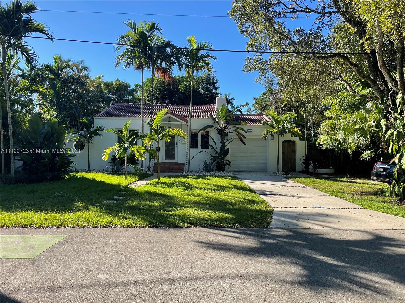 Charming home in the historic highly sought after Miami Shores neighborhood. Blocks from Downtown Shores, Barry University, restaurants and shops. Large corner lot with mature Oak, Mahogany and Mango Trees. Tropical garden plants throughout. Rare White Birds of Paradise mature plants. This 2/1 plus den, original hardwood oak floors, brand new up and down shades throughout the house, Hurricane Impact windows and doors, attached garage with hurricane impact remotely controlled automatic garage door. Independent entrance to the large brick paver patio backyard, 4 years old roof, working Fireplace, new smart kitchen with smart connected top of the line appliances. Large secluded backyard, room for pool. Send your offer with proof of funds or D.U. Approval. Please do not disturb occupants.