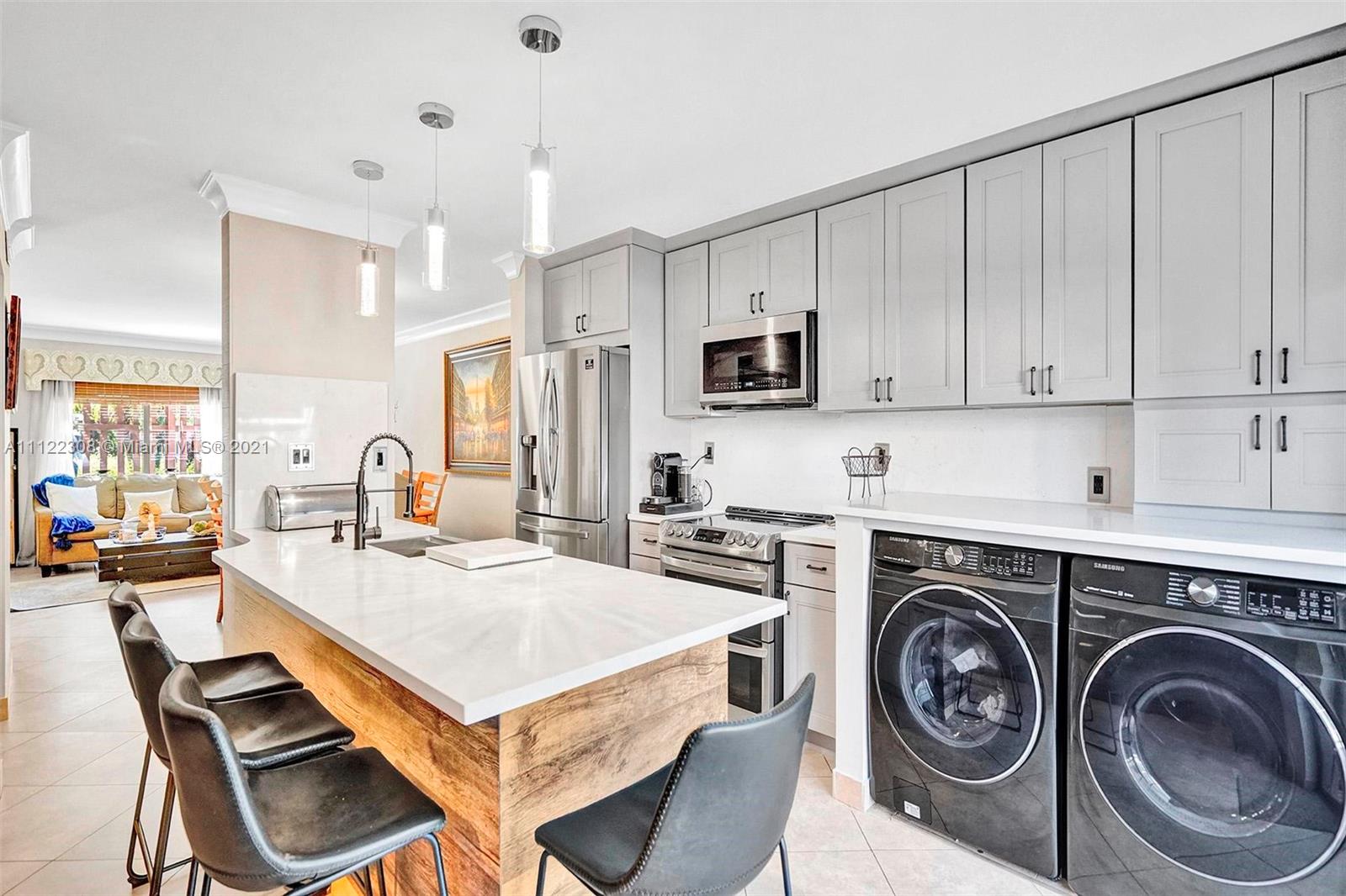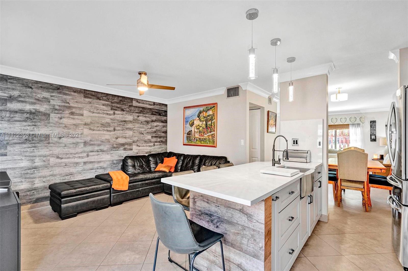 Exceptional 3 bedroom, 2 and a half bath, corner townhome located in Villas East in Pembroke Pines! Features include stunning, open concept kitchen with quartz countertops, stainless steel appliances, custom cabinetry and work spaces. First floor living areas feature, custom lighting, crown molding/trim, accent walls and open floor plan with excellent storage space and half bath. 2nd floor features large master bedroom with ensuite bath and walk in closet, spacious 2nd and 3rd bedrooms with oversized closets and large hall bathroom. New Impact windows and slider and New AC installed in 2018! Entertain to your hearts content in this spacious, tastefully remodeled townhome...this home will not disappoint!