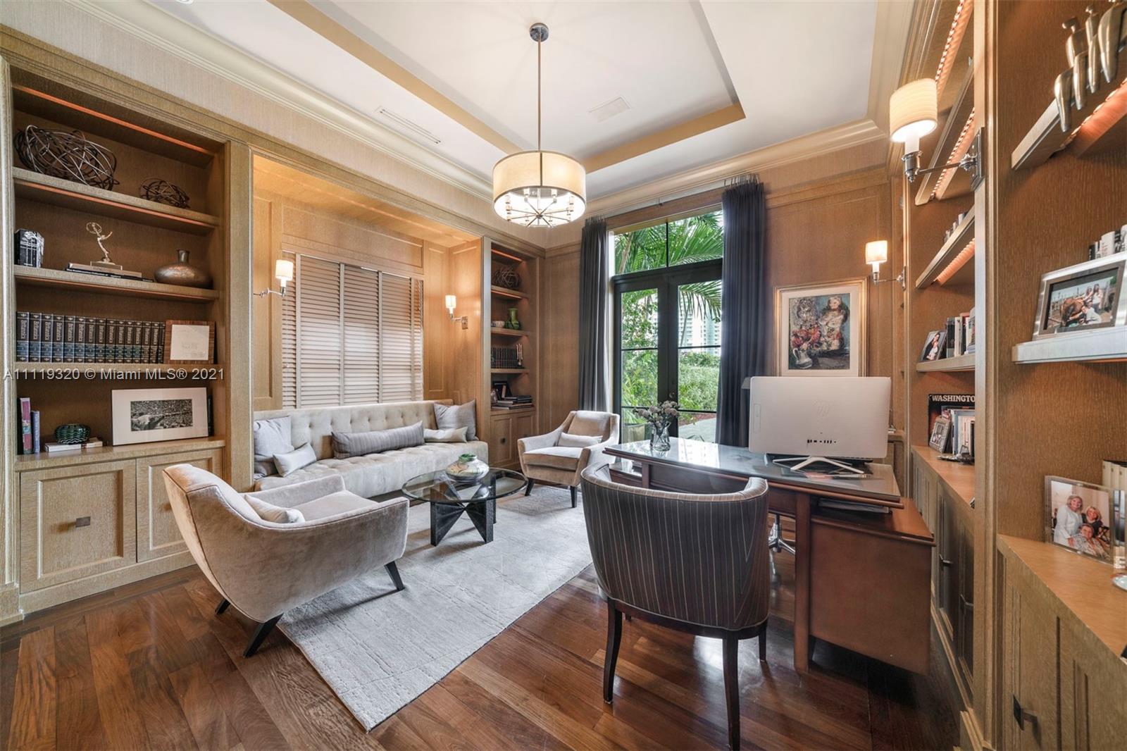 Spectacular waterfront mansion in the exclusive gated community of Island Estates. 5 beds, 6 full & 2 half bathrooms. Enjoy breathtaking sunrises over the Intracoastal; backyard features a sundeck, pool, jacuzzi, wood-fired & gas grills and spacious covered patio. Family room, breakfast area & gourmet chef’s kitchen w/ butler’s pantry leading to a vast dining room with a one-of-a-kind water wall. The living room is anchored by a wet bar & a custom-made fireplace. The light-filled office nods to mid-century classics - an ideal WFH setting. Upstairs, 4 bedrooms w/ en suite baths & terraces facing east and west. Watch the sunset as you unwind w/ a glass of wine. Entertain 10 of your close friends in the home theater or take a few steps from your front door to your 50 ft. boat slip!