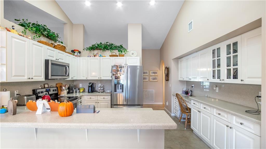 Stunning lake views greet you from every window as you enter this beautifully updated 4 bedroom 2.5 bath in much sought Nob Hill Palms neighborhood! Modern kitchen with white shaker cabinets and expansive quartz countertops!