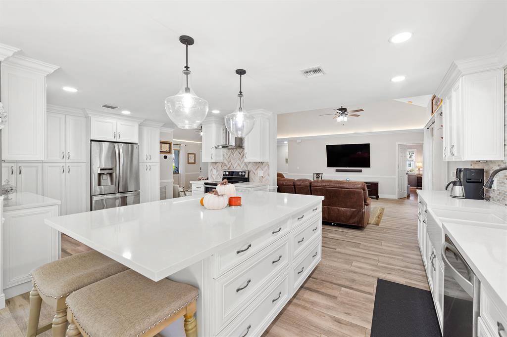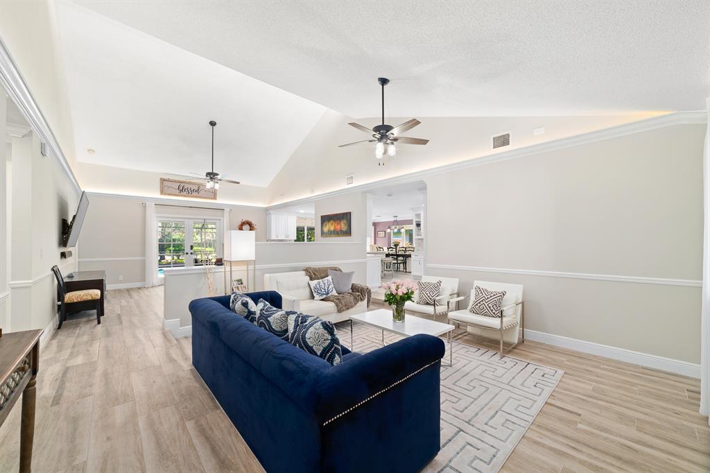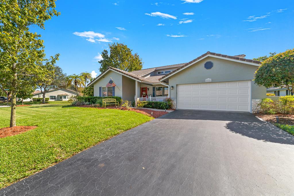 Welcome home! This Coral Springs home is located in the highly desirable, low HOA Pine Ridge community. Situated on a huge corner lot, this property checks all the boxes. IMPACT WINDOWS and NEW A/C! As you enter, you immediately notice the vaulted ceilings and open floorplan with tons of natural light. Wood themed tile flooring covers the entirety of the living and kitchen areas. The home features a gigantic, fully updated kitchen with a huge island, white cabinetry and stainless steel appliances. The kitchen and living room look out to the beautiful, heated pool with large patio, perfect for entertaining. The property boasts one of the largest lots in the community offering tons of play room for the kids or pets.