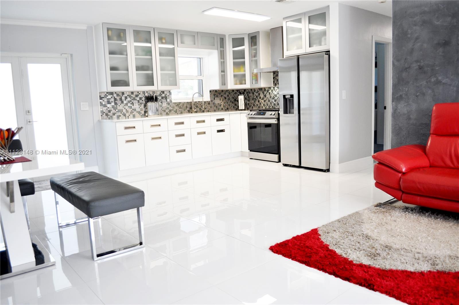 Amazing 3 Bedrooms 2 Bathrooms Pool Home. This Single Family Home features a lot of upgrades like, 5 year old tile roof, brand new gas tankless water heater, new electrical panel, impact windows and accordion shutters, high impact doors, impact garage door, resurface pool, brand new pool pump with variable speed. Custom, open concept kitchen with self closing kitchen cabinets and doors, exotic quartzite countertops level 5, Samsung stainless steel kitchen appliances. Totally remodeled bathrooms. Porcelain high gloss tile throughout the entire house. Tons of natural light. Beautiful backyard with custom waterfall. Attached cover parking garage & space for RV/Boat. Must See !!! Easy to show.