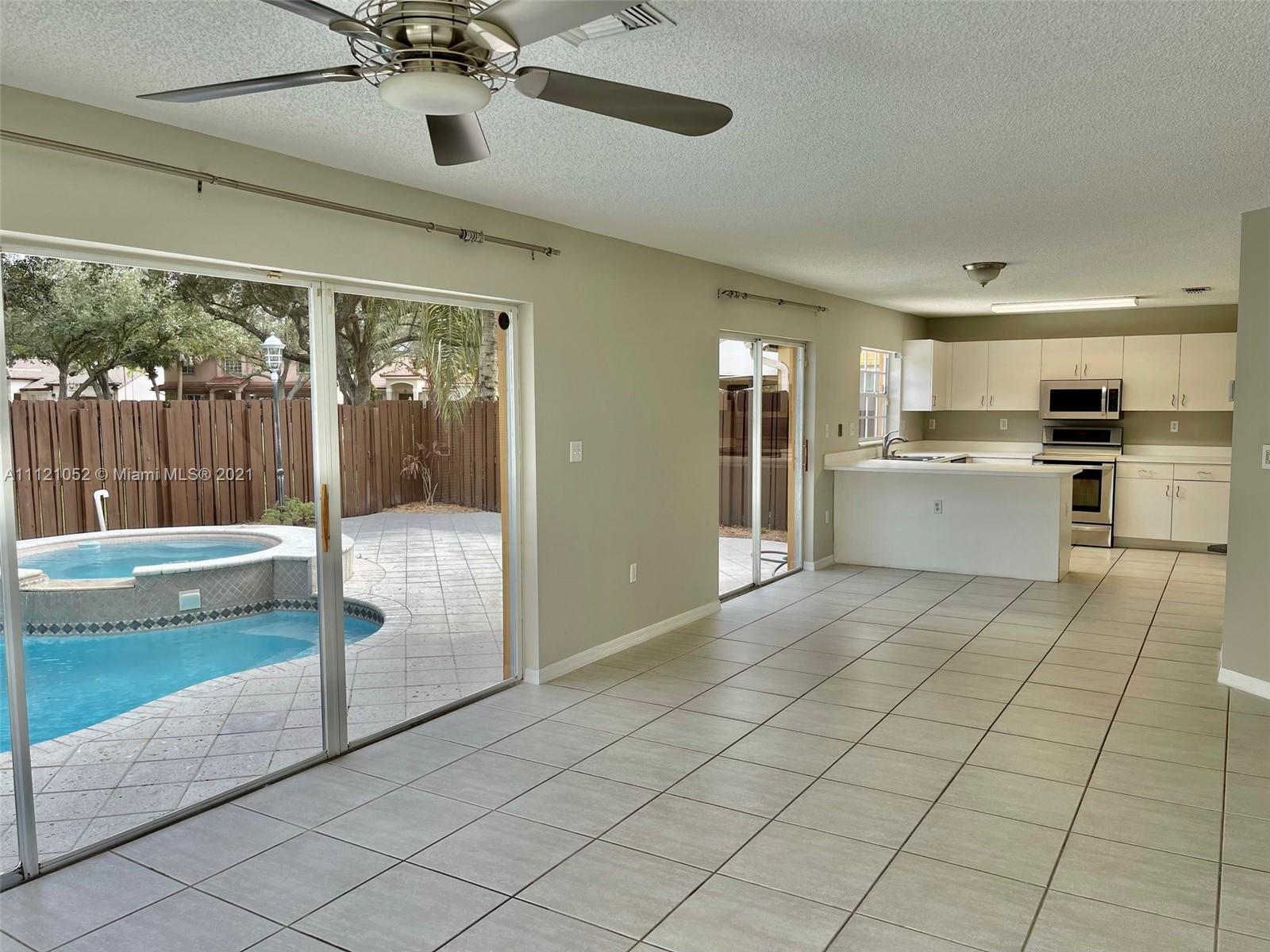 LAKES ON THE GREEN pool home on a private 10 acre park. No rear neighbors and lots of privacy in this 24/7 guarded and gated community with roving security patrol. Sidewalks on both sides of the street. Within walking distance to Publix, CVS, Sedanos, banks, restaurants and much more. Also walkable to County Lake Park with many playground amenities for children and walking paths. Completely repainted inside and out. Pool completely resurfaced. New air-conditioning unit. HOA only $150 per month.
