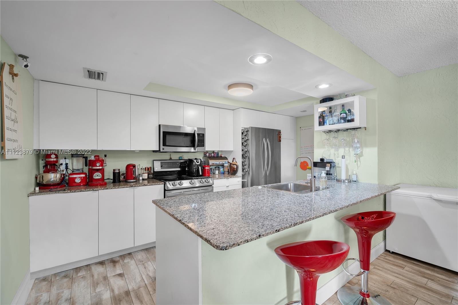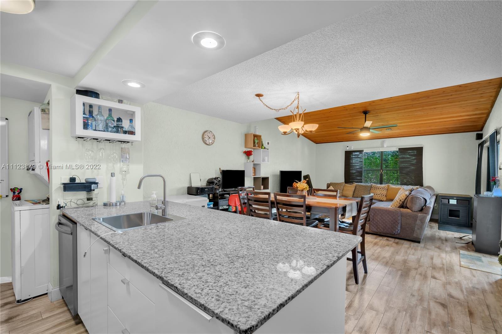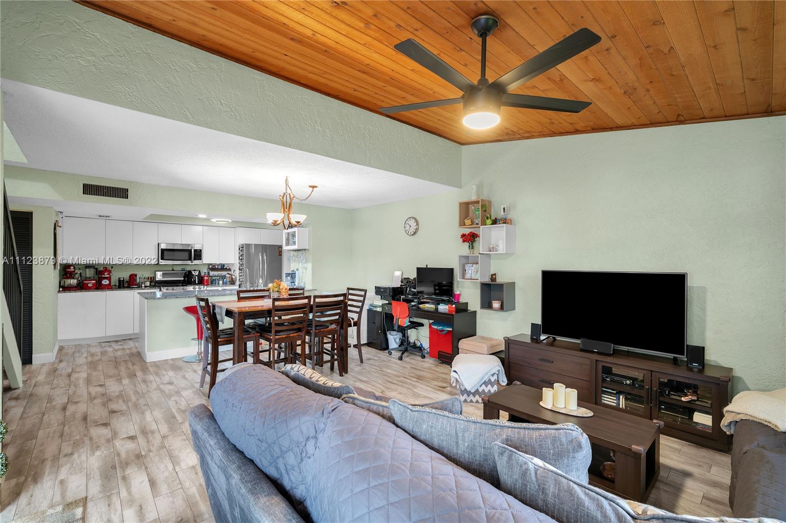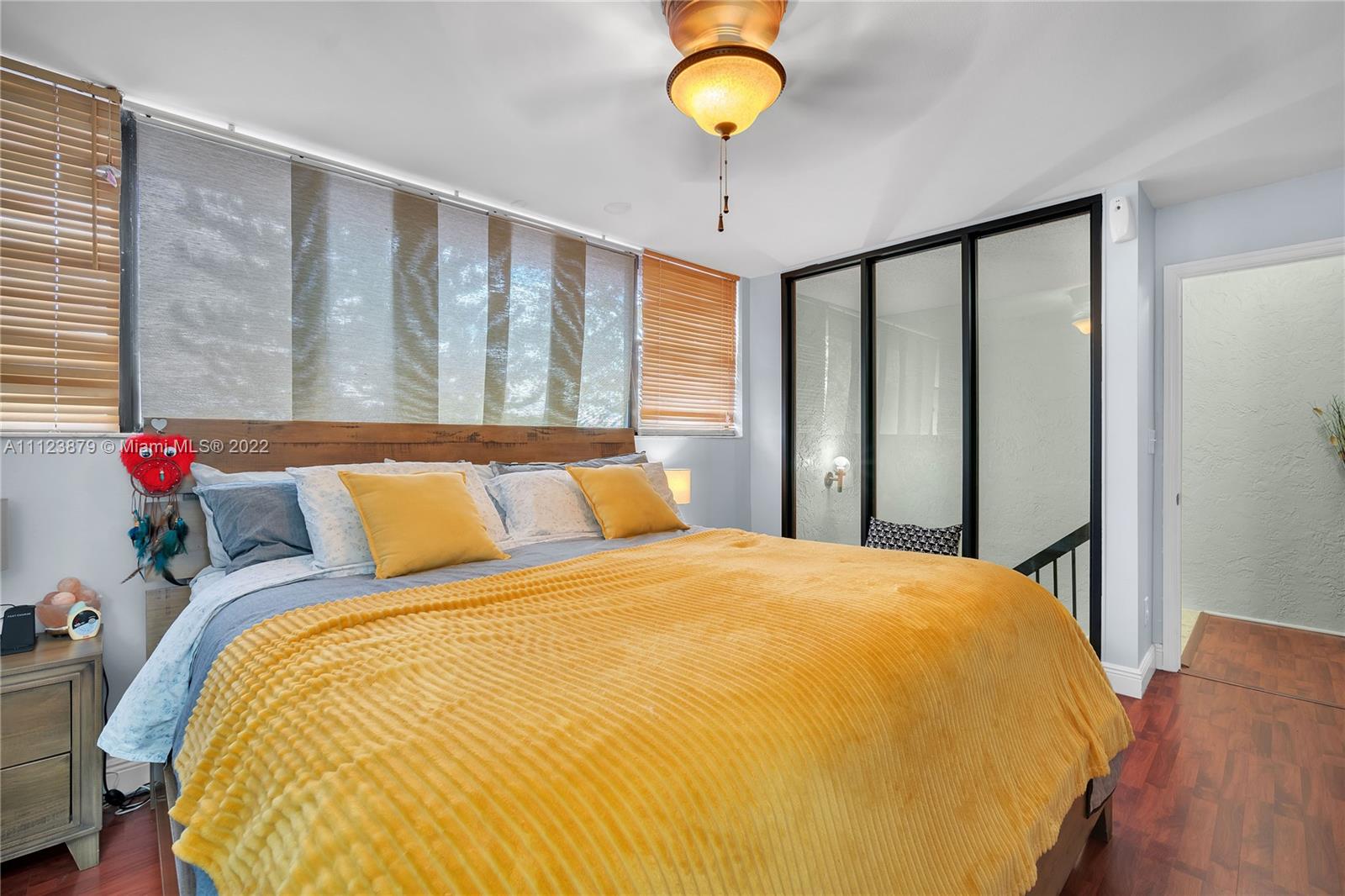 Great, upgraded CORNER starter home with a screen-in patio with wide lake views! 1 full bed and bath with a large great room downstairs with the Primary bedroom and bath upstairs. Upgraded kitchen, baths, and flooring. Flamingo Villas is a Guard gated community with LOW HOA fees which include but are not limited to a community pool, playground area, and fitness room. It is conveniently located in the heart of Pembroke Pines near shopping, restaurants, parks, golf, Memorial hospital, and schools.