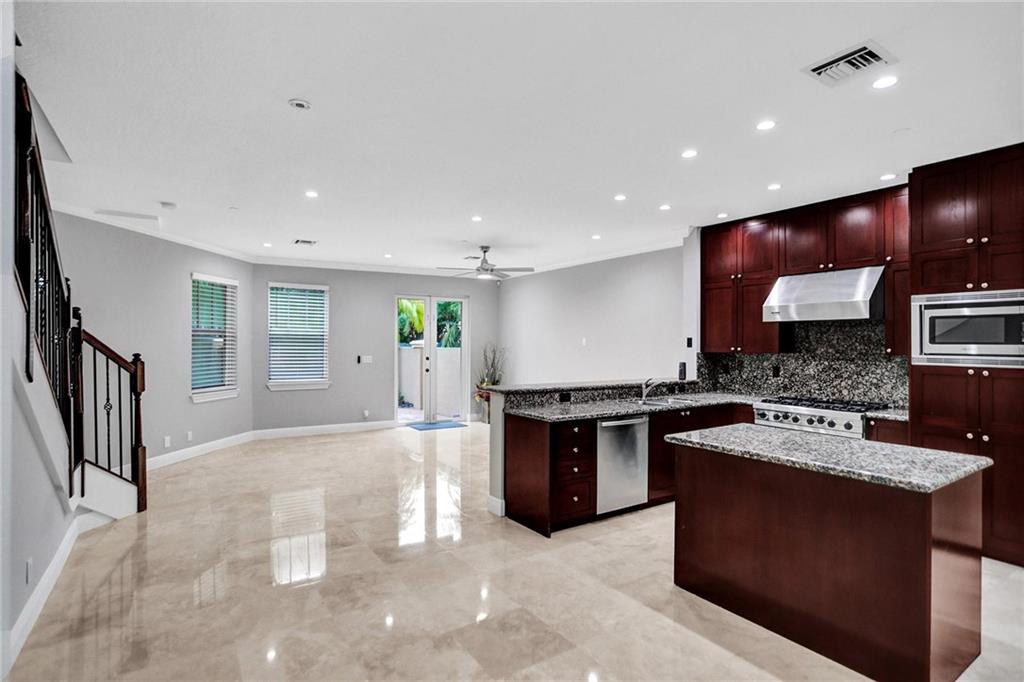 Stunning Victoria Park townhome that feels like a single-family home! The First floor has an open floor plan featuring the kitchen, dining room & family room. The second floor has two bedrooms with ensuite bathrooms. The open kitchen features stainless steel appliances, including a six-burner Viking gas range and granite countertops. The 3rd-floor loft and private bedroom and bath is ideal for a guest suite or master. This lovely townhome features hurricane impact windows, an elevator, and a private terrace. This home is in a very convenient location to shops & restaurants. There is a short walk to Las Olas Blvd and a short bike ride to the beach.