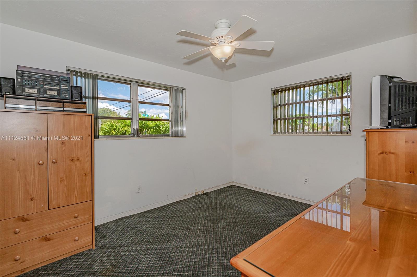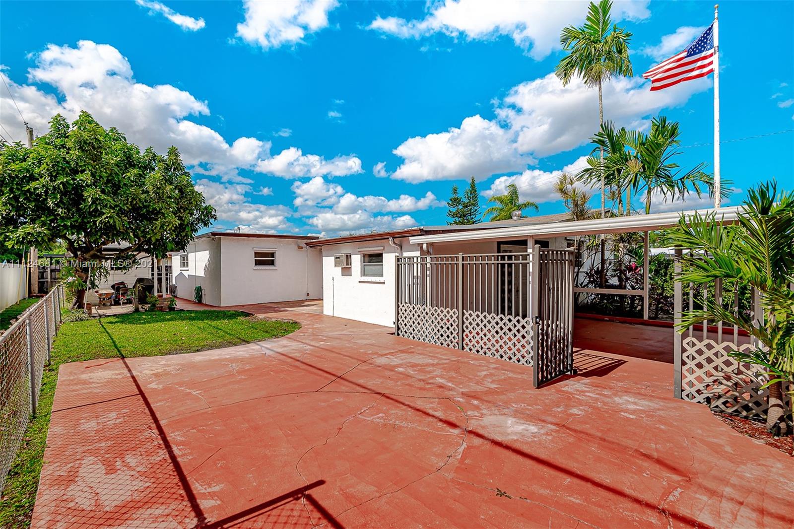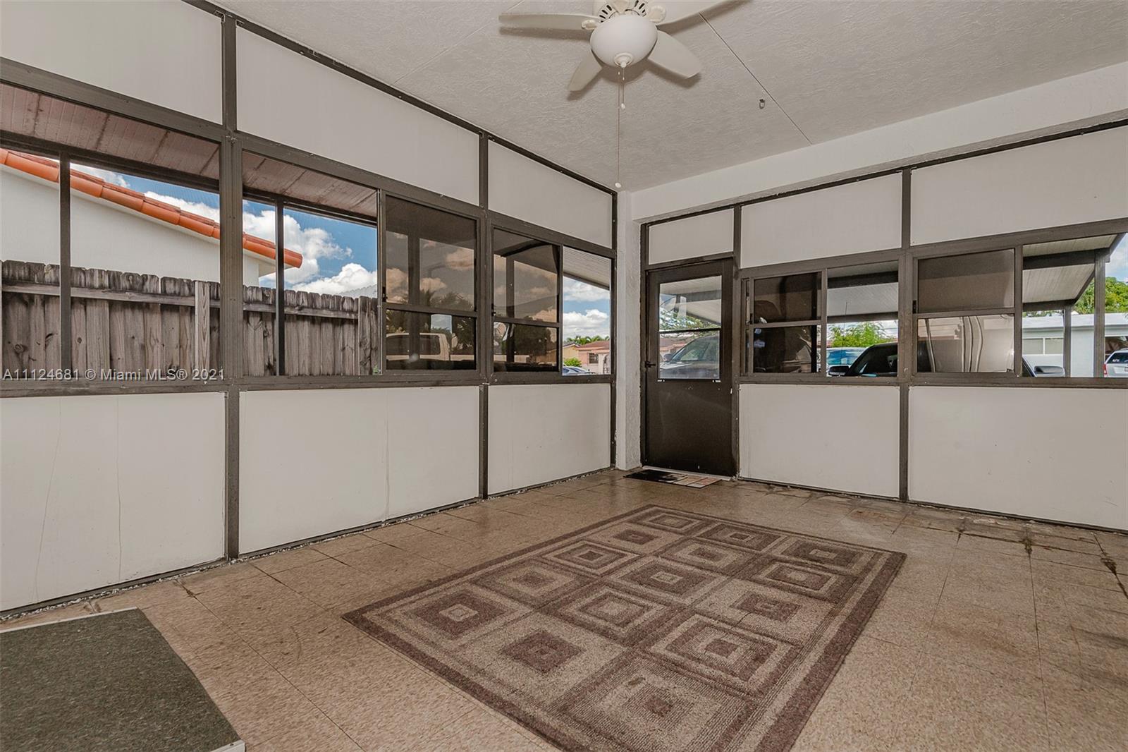 Many extras s in this upper West Hialeah charmer. Main house has 3/2 plus family room and 2 bonus rooms. In-law Apt is beautifully decorated with nearly 800 SF with a full kitchen, living room, huge bedroom and full bath all of which has access to the main house but also has a separate entry. The main house is mostly original except for the roof and a/c which are recent. There is a new wall a/c in the in-law apt also. This corner lot has 2 separate carports for a total of 4 cars. Behind the east carport, there is a short garage that fits a motorcycle or golf cart; behind the mini-garage are two bonus rooms. There is a large concrete pad for boat or RV parking plus a patio, porch, workshop and planting area. The possibilities are endless!