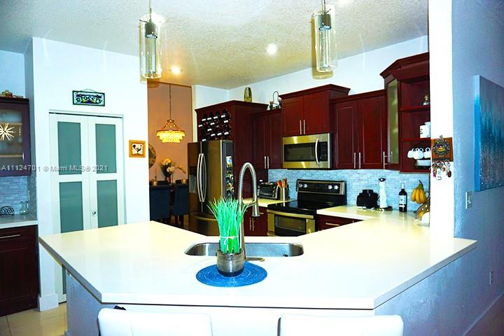 Beautiful 4 bedroom, 3 bath home on an oversized lot in desirable Rock Creek. Enjoy the open and spacious design of this home with modern upgrades throughout including high-end kitchen cabinets, quartz counter tops, built-ins and island, stainless steel appliances, tile flooring, vaulted ceilings, large master suite with roman tub and walk-in closets, renovated bathrooms and LED lighting. Kitchen and family area show stunningly with tons of natural light. Great backyard for entertaining family and friends or just relaxing outdoors. Covered patio area with concrete stamped deck and complete impact windows/doors. No expense spared in this amazing family home. Conveniently located in the much-desired Cooper City school district, parks, bike/walking paths, playgrounds and much more. Must see.