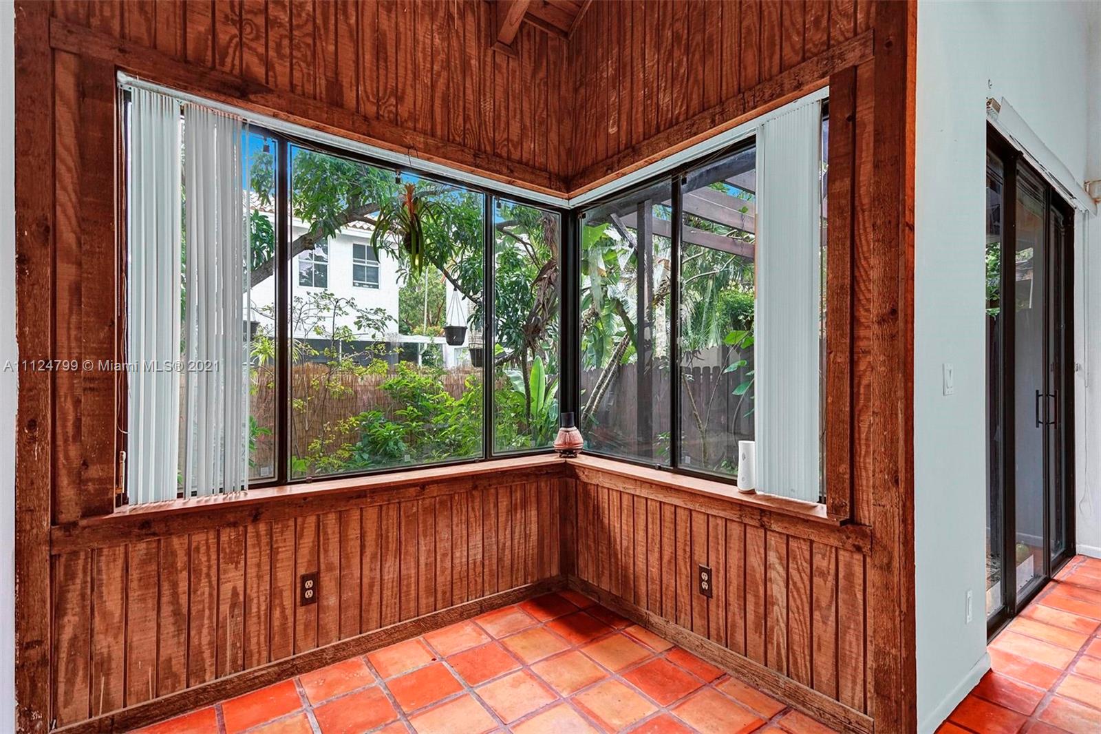 Spacious and bright 3/2 townhouse in a beautiful, leafy community across the street from TY Park in Hollywood. Quiet end unit with tall wood beam ceilings, great for entertaining and relaxing. Literally backs up to the association's private dog park, tennis court, pickle ball courts, basketball court, and steps to the swimming pool and playground. Walk to nearby houses of worship, restaurants and stores, and a short drive to Dania Pointe, Oakwood Plaza, Downtown Hollywood and Hollywood Beach. Exceptional landscaping and amenities in a well-maintained community with low monthly maintenance. Windows upstairs and downstairs look out to many big trees and shrubs.  Perfect home for nature lovers, families, dog lovers and active lifestyles.