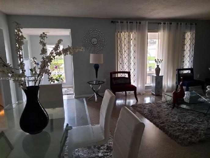 3/2 bungalow style home, in City of Miramar. Drive up the circular driveway to a lovely home full of tranquility, relaxation, & blissfulness. Spacious bedrooms, a designer style walk-in closet in the master bedroom. 2 beautiful bay windows brings natural light in kitchen & living room. Lots of living and parking space to accommodate family, friends and out of towners. Covered patio overlooks the pool. Sip a cup of coffee in the kitchen looking at the beautiful pool thru gorgeous sliding glass doors. Stainless steel appliances including a dishwasher. New hurricane impact windows, roof (1yr) & 2 upgraded bathrooms (a standing shower & nice decor, & a bathtub with penny tile flooring in hues of grey. HVAC excellent condition. Newer washer and dryer & storage in the garage. No HOA.