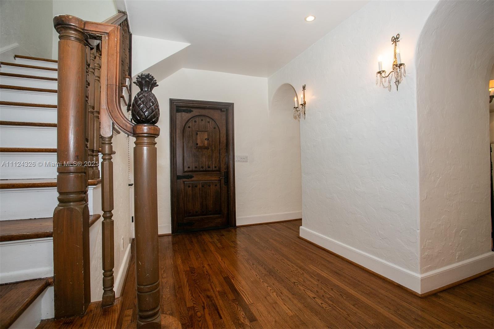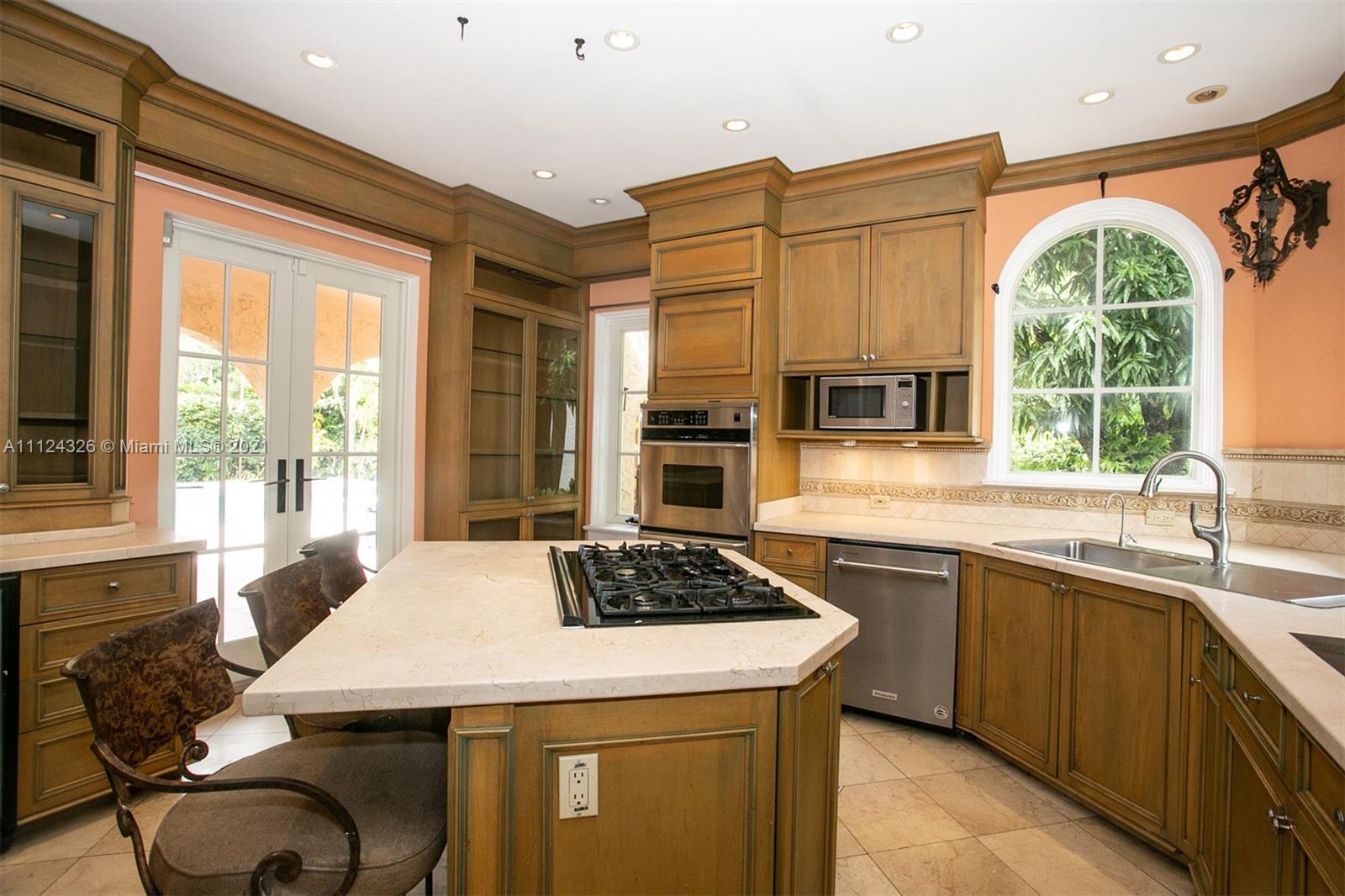 Astonishing Mediterranean home is a National Historic Landmark. 5 beds, 4 1/2 baths home nearly 4000sf on oversized 11.5K sf lot with garage. Fully renovated & modernized. Impact windows & doors. Spacious kitchen w/center island, granite counters, upscale steel appliances, dual oven & gas cooktop. Hardwood floors throughout. Spacious living room w/floor to ceiling windows & a fireplace. Formal dining w/elegant crystal chandelier. 2 Master bedrooms w/ his & hers closets. Master bath has upscale tile & open walk-in shower. Extra large heated pool, w/waterfalls & adjustable color lighting. Beautifully landscaped w/ greenery & historic oak tree, completely enclosed. Guest house w/ full bath & covered veranda. Walk to restaurants, banks, cafes, stores, 5 min to Miami Shores Country Club & Golf.