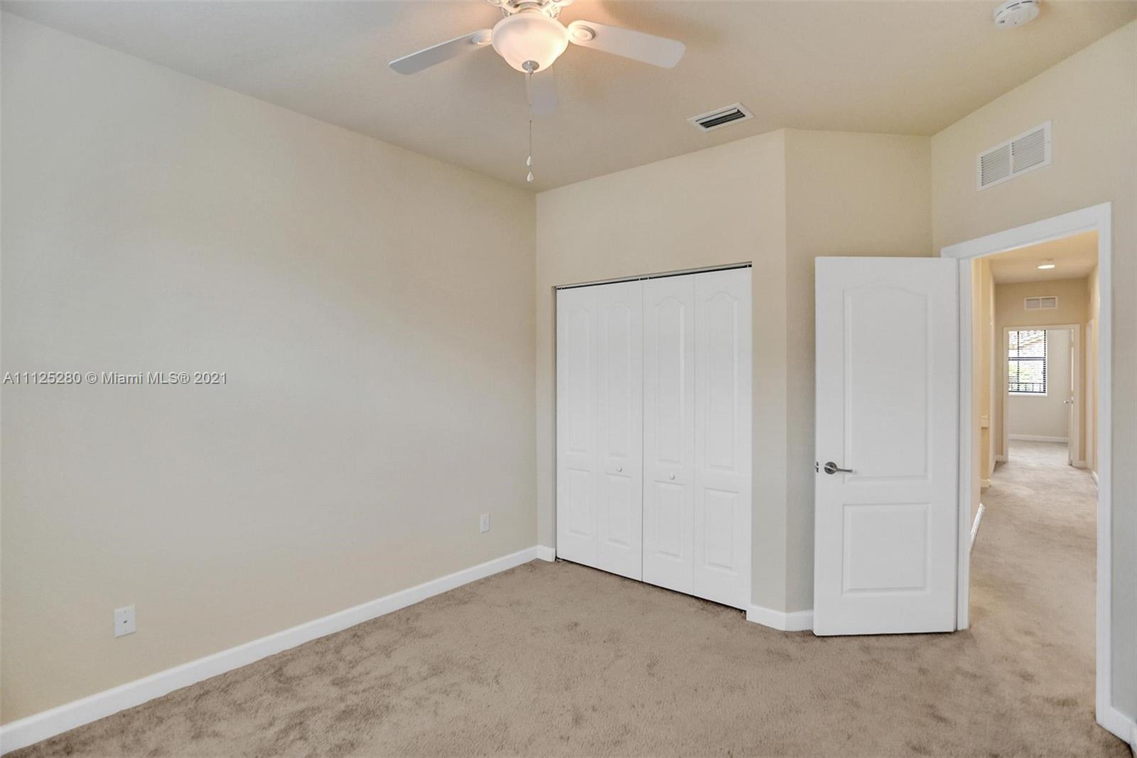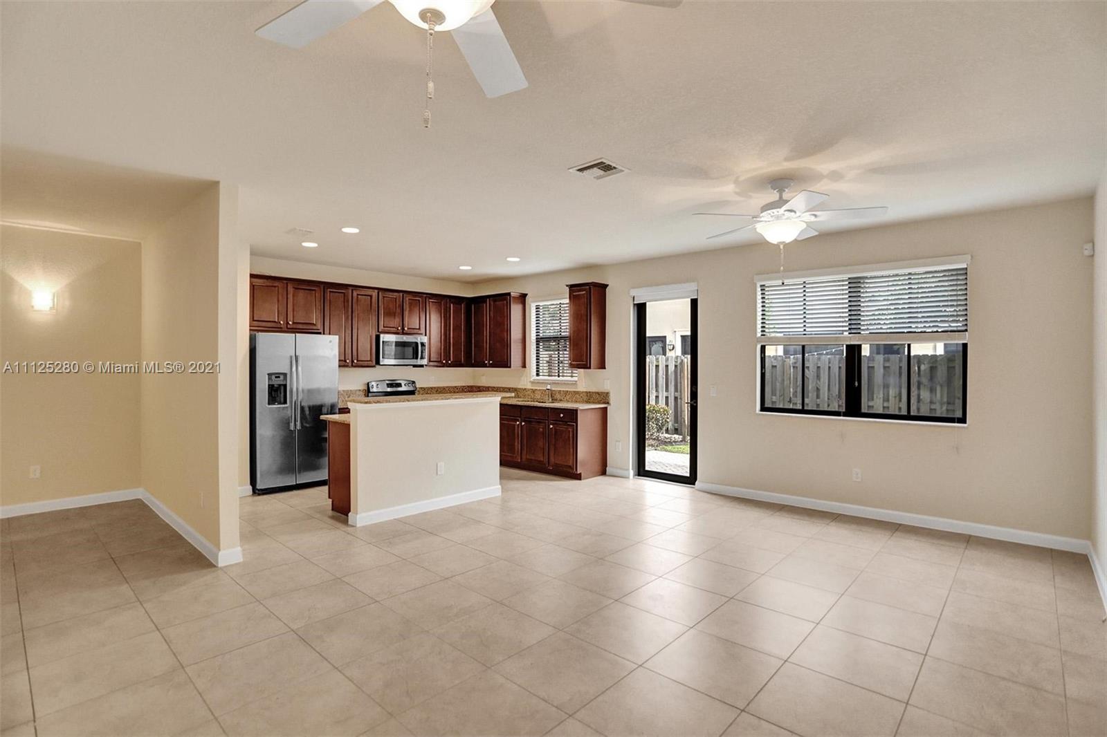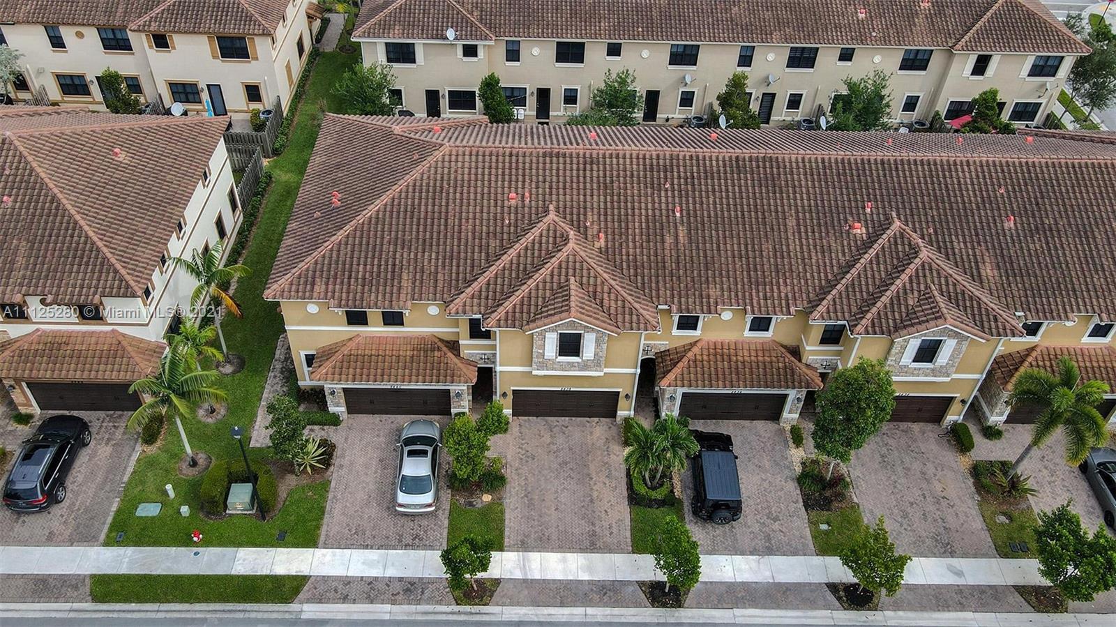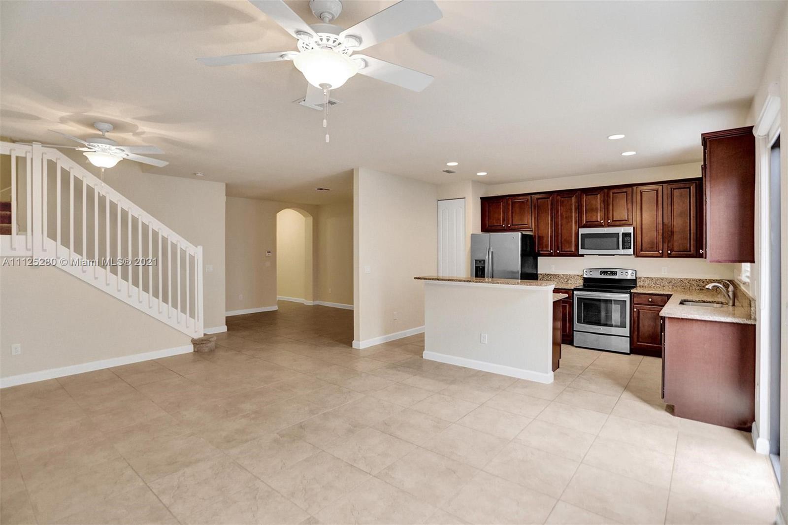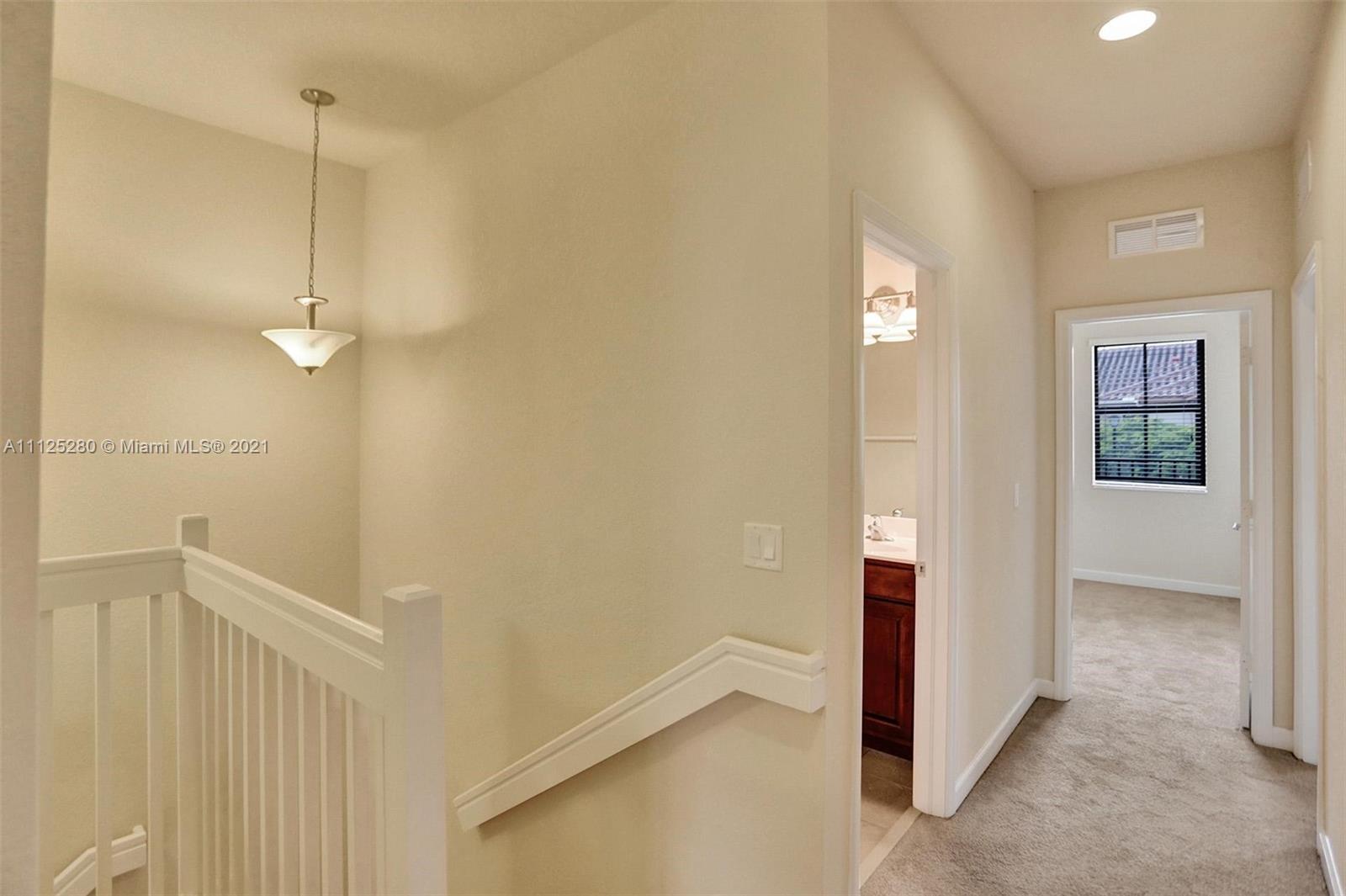 Spectacular 4 bedrooms and 3.5 bathrooms townhome at Town Parc at Mira Lago. This townhouse feature a stone entryway wall, beautiful tile floors downstairs and light color Carpet on stairs and second floor, granite kitchen counter tops, tall kitchen brown wood cabinets and Stainless Steel appliances. Fenced back patio/bricks. Impact glass doors and windows, Fulls size Washer and Dryer on second floor, ceiling fans in all bedrooms and social area. Town Parc is a 24 hour guard gated community with access to luxury pools, a state-of-the-art fitness center, an aerobic center, 24,000 sf MiraLago Clubhouse, splash park, playgrounds, tennis courts, basketball, biking/walking trails, and much more.