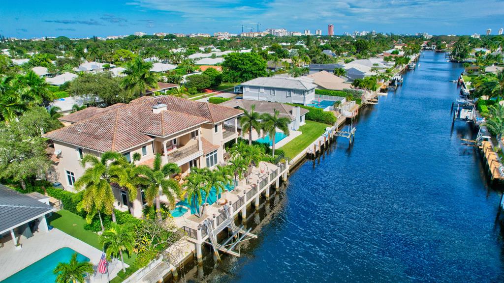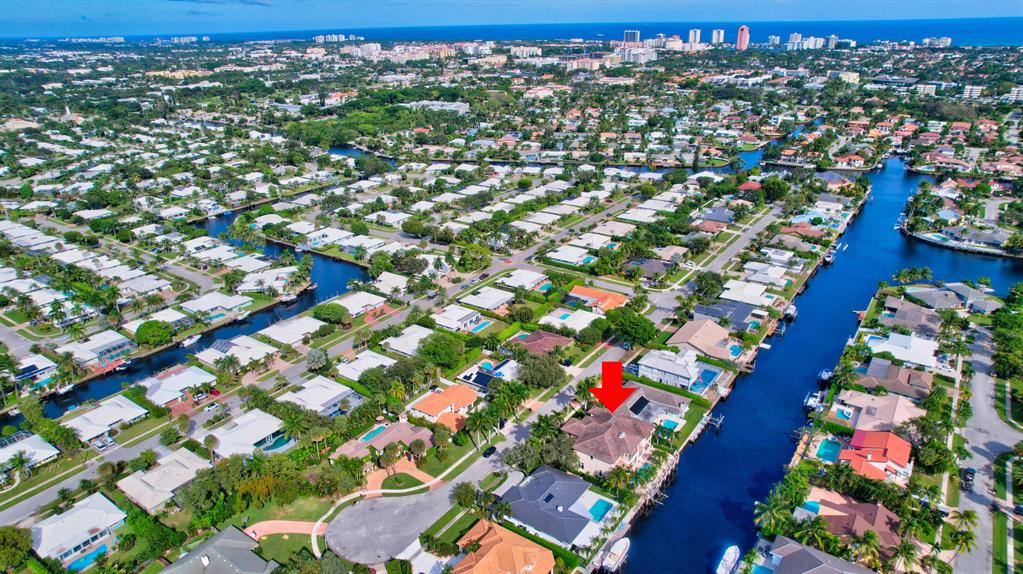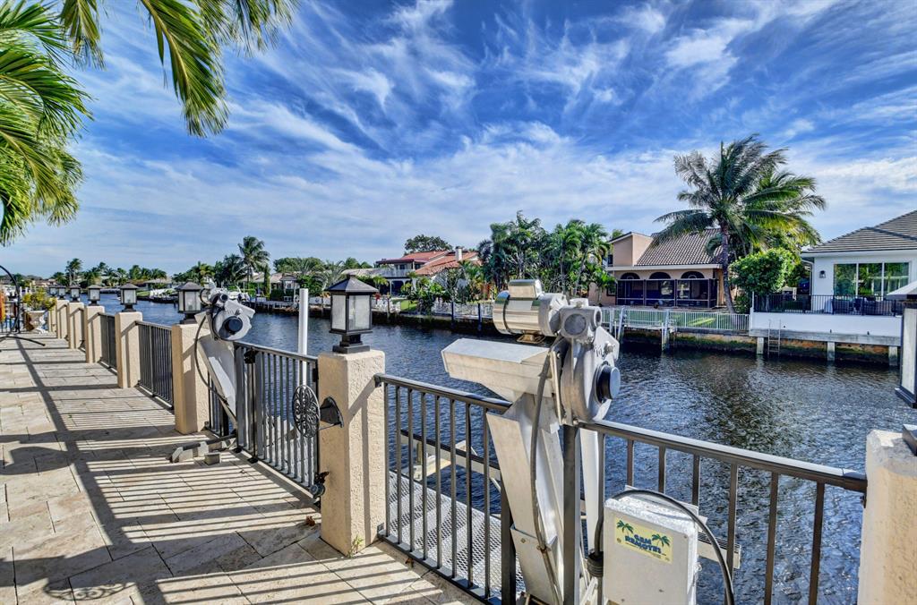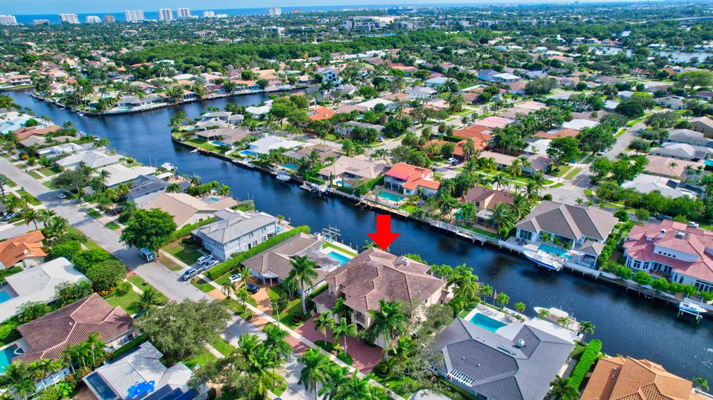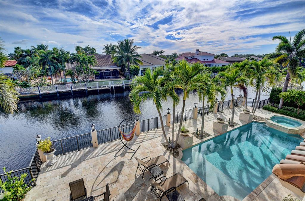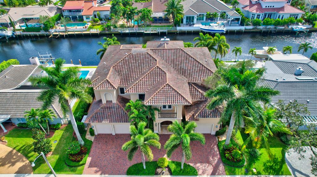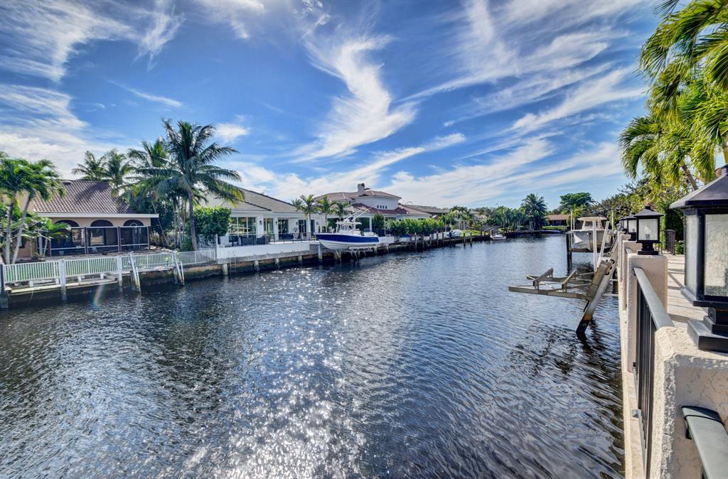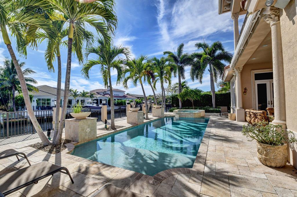 European opulence flourishes in this waterfront masterpiece in east Boca. This designer home boasts five en suite bedrooms, five and one half baths. Enjoy the quietude of this house's cul-de-sac location yet near beach, downtown and A rated schools. Spacious gourmet (Wolf, Subzero) kitchen with walk-in pantry, cook's island. Wood burning fireplace with gas starter, sound system throughout house, pool and small garage. 100% impact glass and new full size generator. Resort style salt pool/spa, salt generator system for both with new heater and pump. Two A/C units are new. Enjoy outdoor dining w/ your summer kitchen! The canal has direct access to the intracoastal and ocean. Dock frontage is 90 ft with a12K lb lift. Be the next owner to enjoy the splendor of this meticulously appointed home!