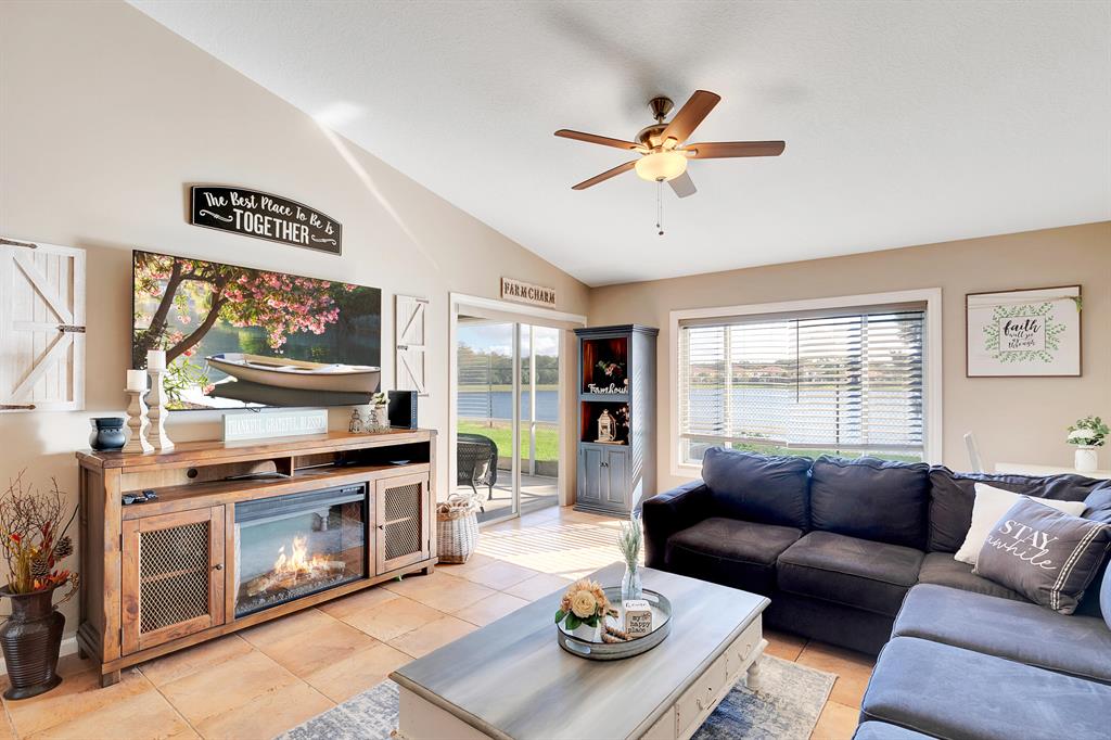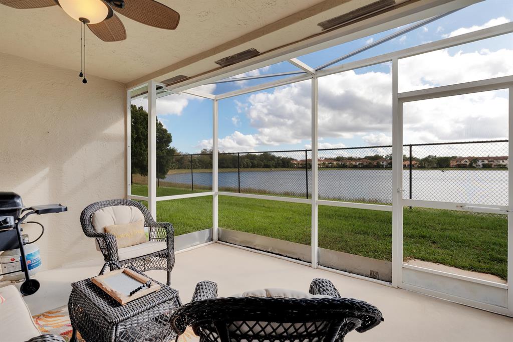 An amazing 2 bed 2 bath 1 car garage villa with gorgeous water views located in Andros Isle. This updated townhome is all one level and features vaulted ceilings throughout. Step inside this warm and cozy space with beautiful and tasteful upgrades throughout. The kitchen was updated in 2018 with all new stainless steel appliances, granite countertops, a sleek and neutral backsplash plus white cabinetry. The bathrooms have also been updated with granite countertops and new faucets. The master has a gorgeous view to the patio and lake, a large walk-in closet and master bath. The second bedroom has an adjacent bath perfect for guests.
