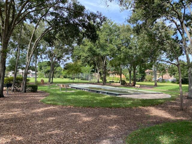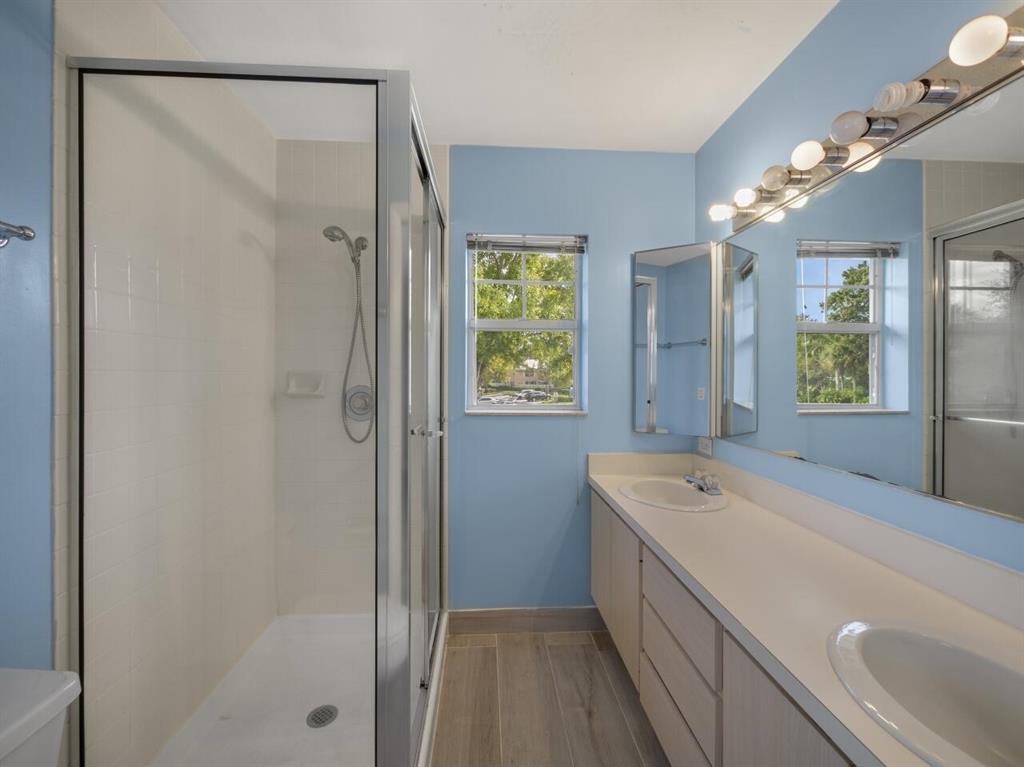 Your beachy paradise awaits you in this beautifully updated, perfectly situated quad. In the heart of Palm Beach County, just minutes from Downtown West Palm Beach, with quick access to all major highways, this 2/2.5 has it all. You'll immediately notice the curb appeal of this tucked away subdivision of Stamford at the Villages. Not just another brown quad, you'll feel pride in ownership pulling up to this white lattice fenced gem. After passing through your private courtyard, you'll open your door into your oversized great-room with gray Spanish porcelain tile, flooring throughout the downstairs and a 1/2 bath/laundry that is not only functional, but light, bright and charming featuring custom cabinets, decorative breadboard. Not to be out done, the adjacent