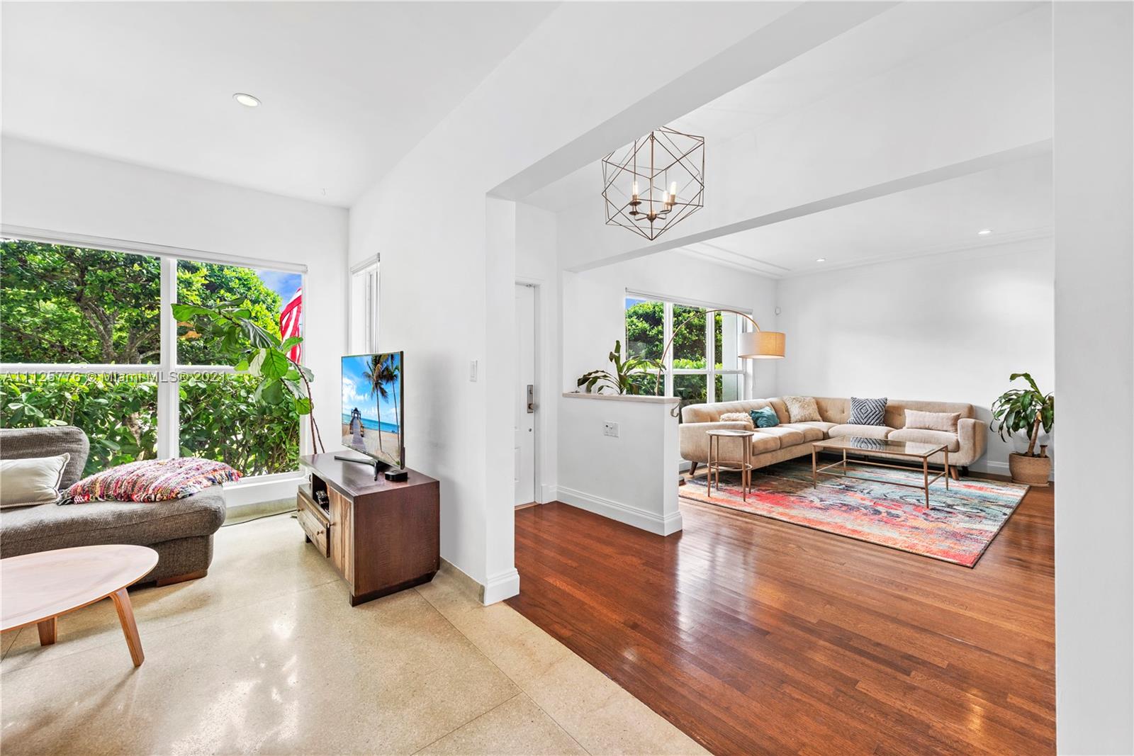 Beautiful family-friendly 4-bed/3.5 bath home on a quiet street in an ideal Mid-Beach location in the heart of all that Miami Beach has to offer. Standout features include original hardwood and terrazzo floors, volume ceilings, custom built-in closets and an open floor plan complemented by a large master bedroom and bath. A large open chef’s kitchen with a spacious island and generous seating provides ample room to cook and entertain. A grand wood deck surrounded by a lush garden offers plenty of outdoor space and a tropical atmosphere for hosting events. Enjoy earnest comfort in a desirable Miami Beach neighborhood.