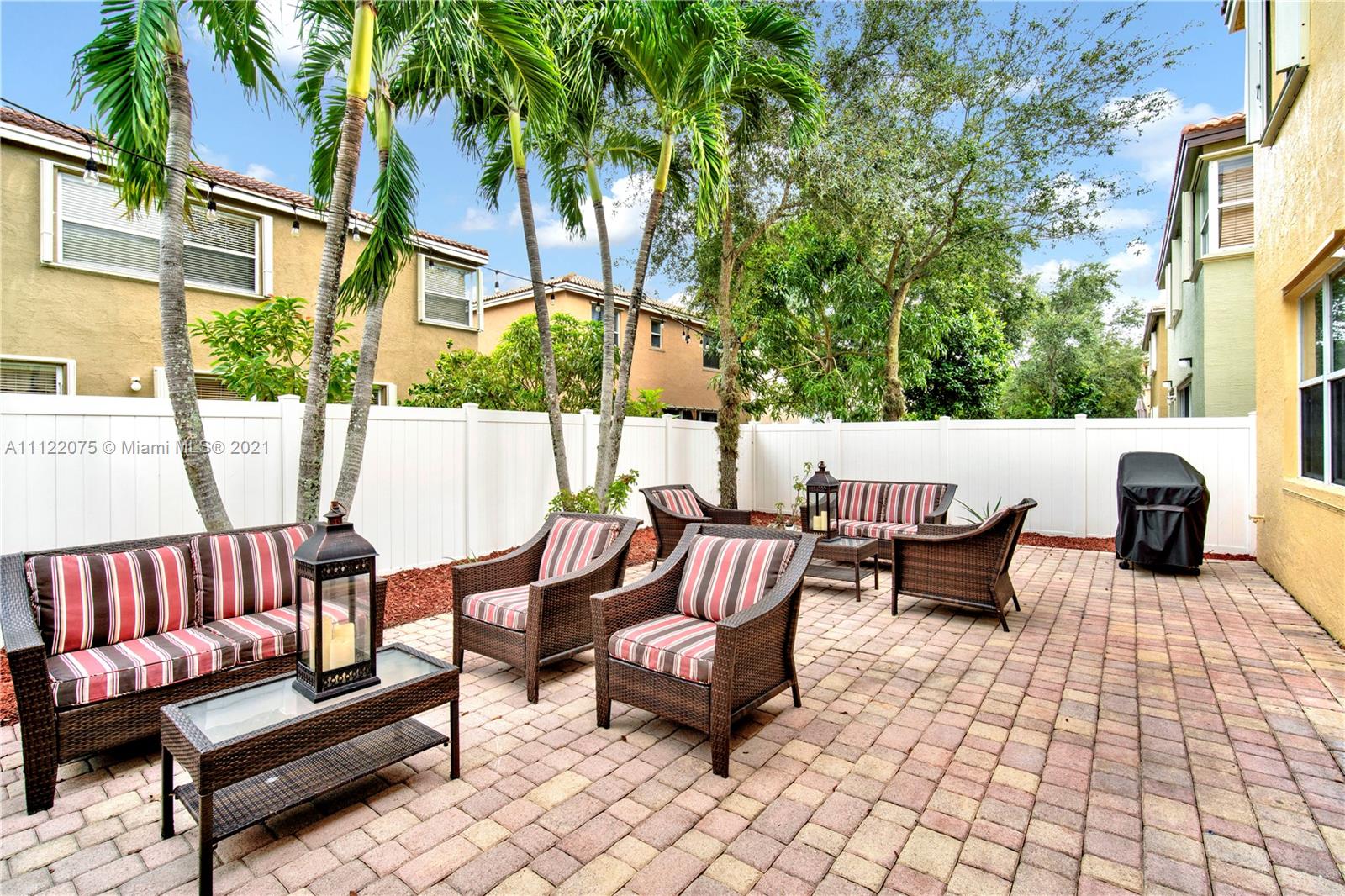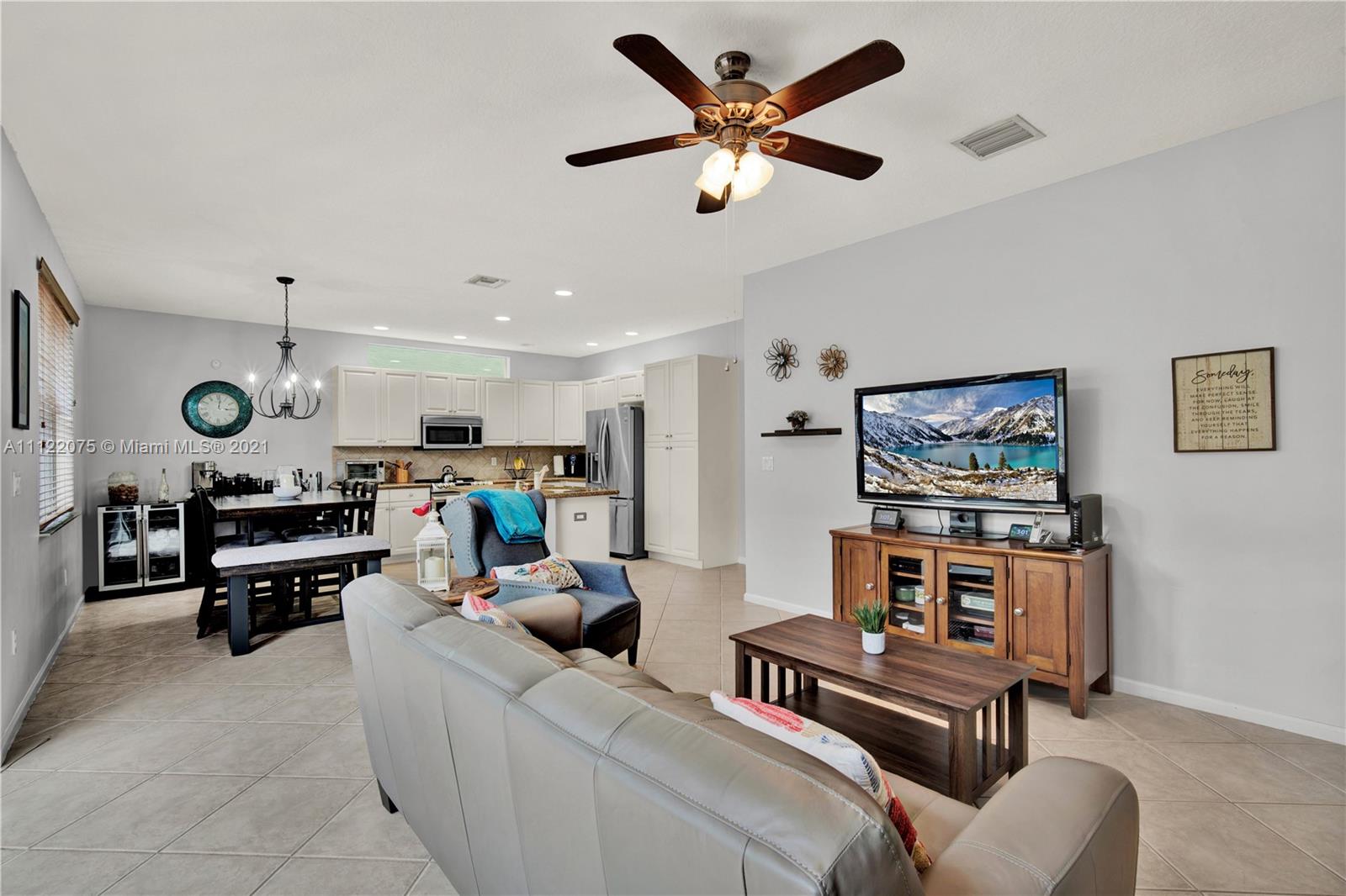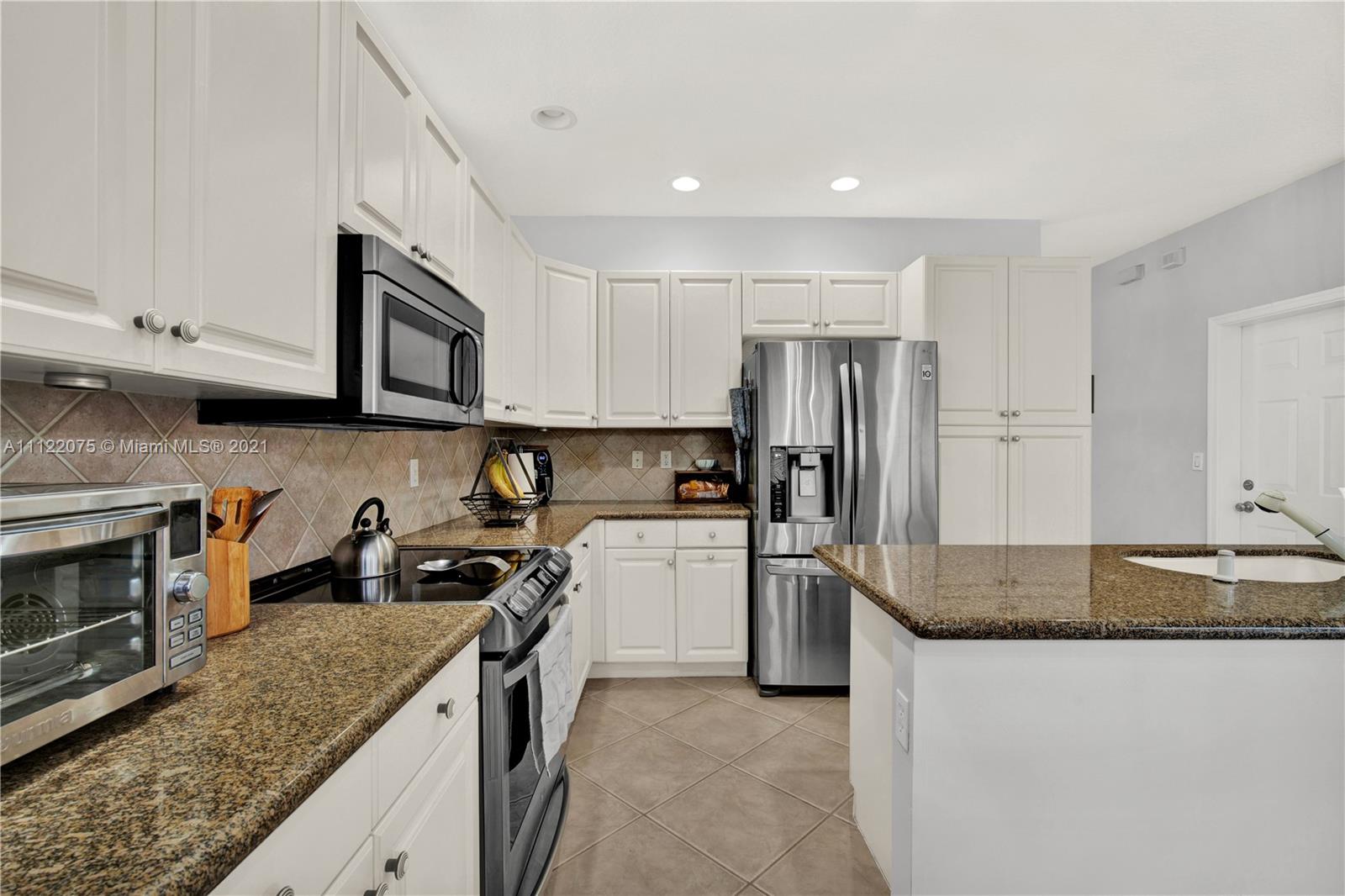 Interiors boast 2,180 sqft of pristine interiors, soaring ceilings, durable tile flooring, and stylish updates from top to bottom. The kitchen is sure to be a favorite space to relax and entertain small to large gatherings finished with granite countertops that flow into a large center island, classic white cabinetry, and stainless steel appliances all open to a breakfast room and family room allowing for a spacious open floor plan. Live a lifestyle of luxury and convenience with access to unparalleled amenities including a state of the art community center with an amazing exercise room, play room, and more while the outdoors offer jogging/walking trails, tennis and basketball courts, playgrounds, a pool with waterfall features and so much more
