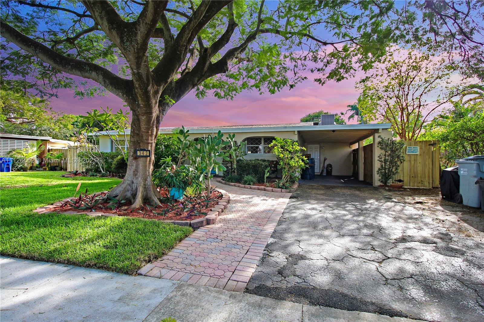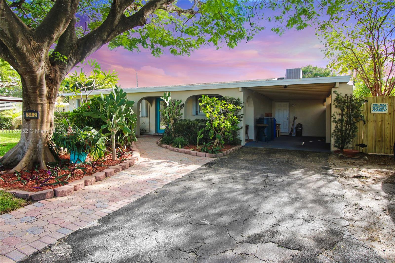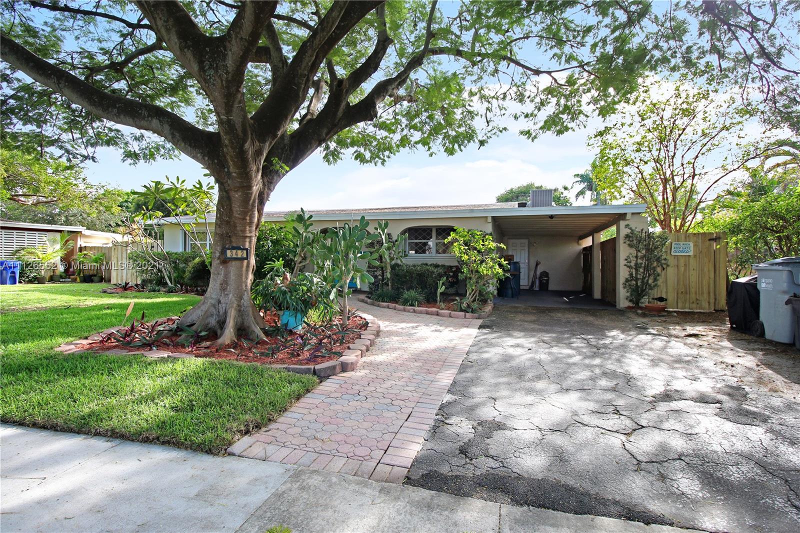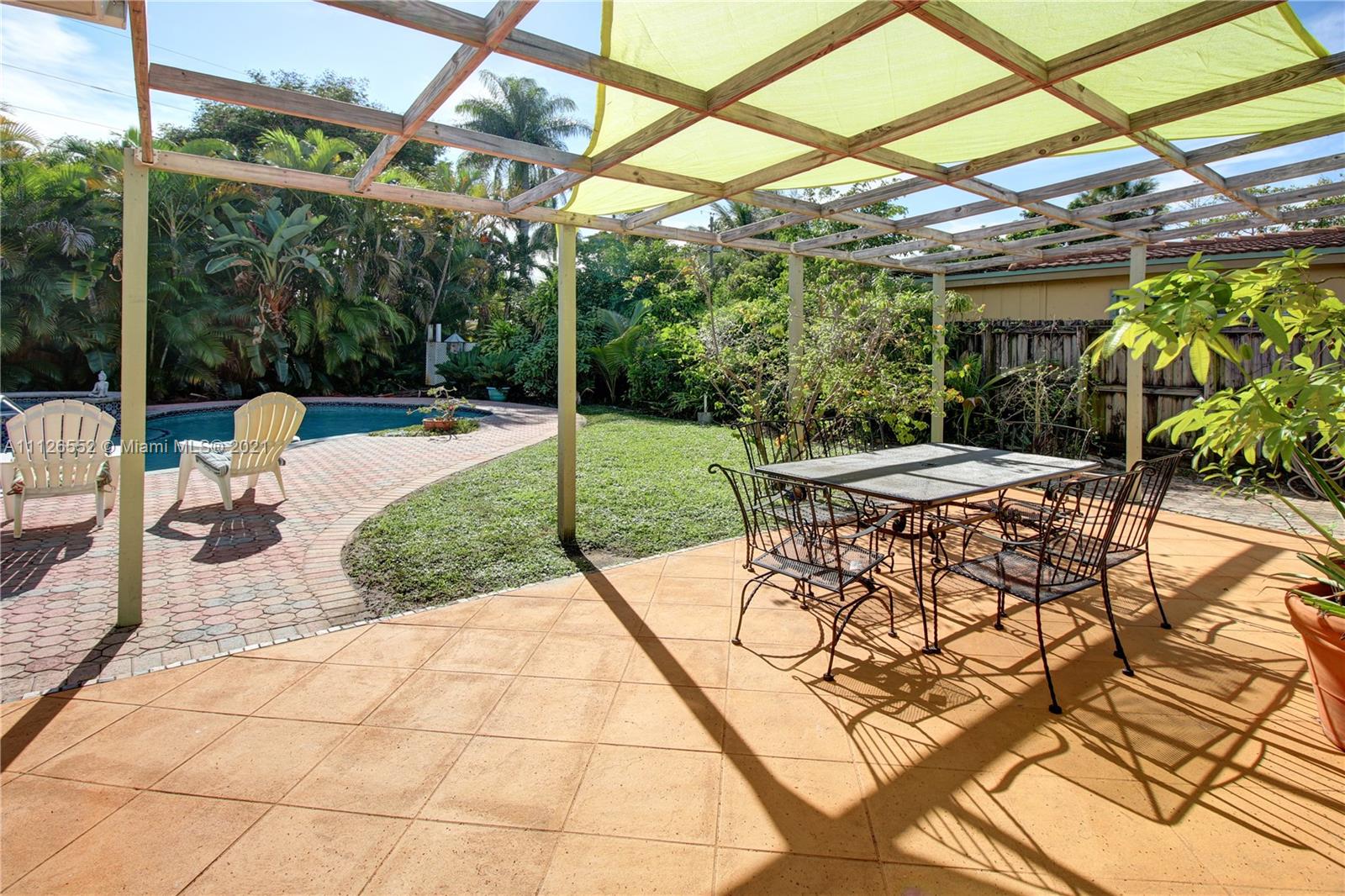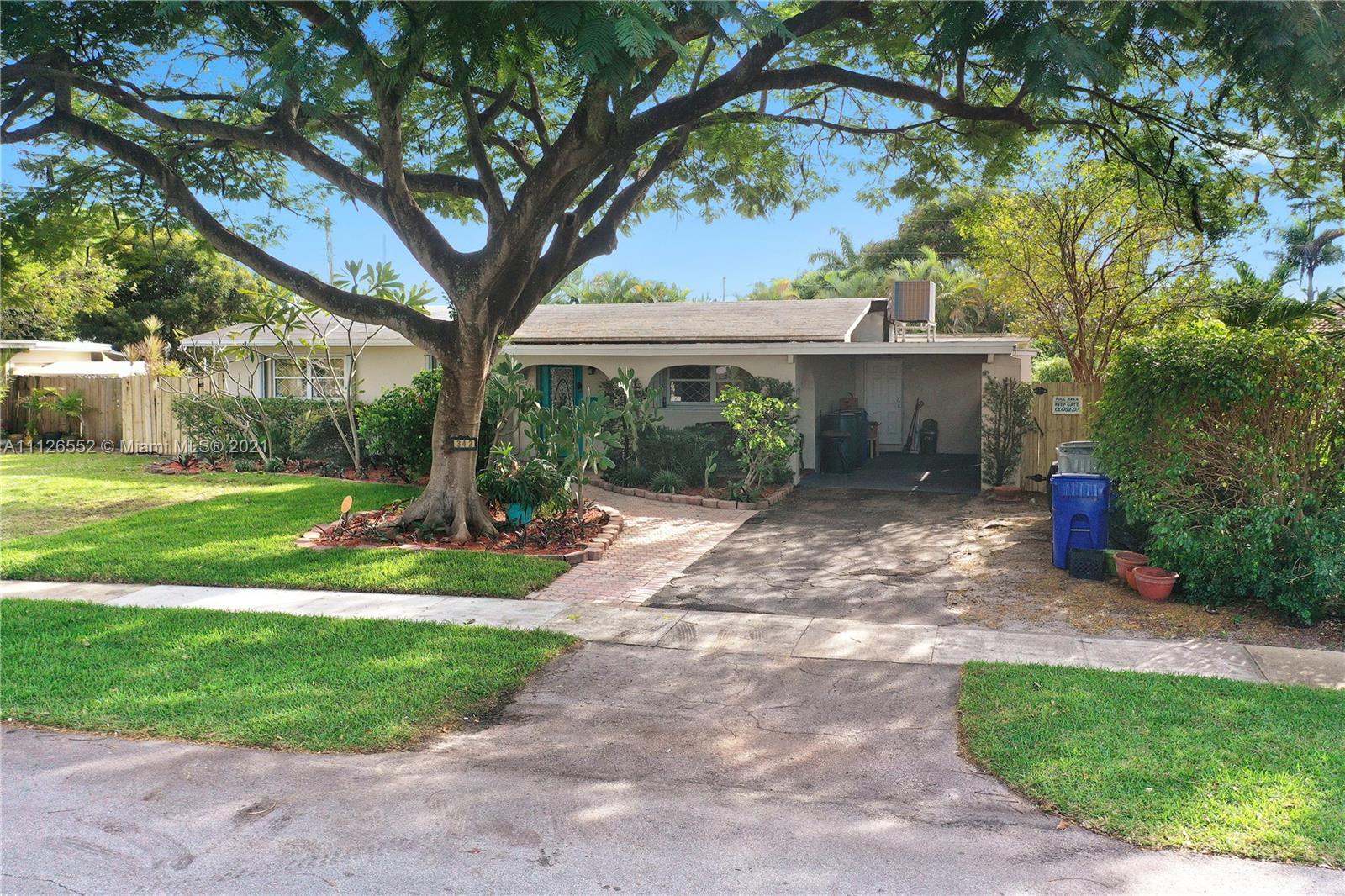Entertain in this amazing POOL home with an oversized, fully fenced lush backyard on over 8,000 SF lot. This 3 bedroom, 2 bathroom home features two living areas, two dining areas, extended farmhouse style kitchen with sink window looking out to pool, lovely stained glass features, a beautiful flamboyant tree on front lawn, covered carport, shed in backyard, and NEW A/C. Kitchen features additional pull out cabinets for extra storage/pantry space. Opportunity to own an island-style home, and potential to make it your own! Lovely neighborhood. and close to beach!