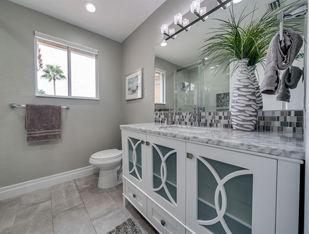 AMAZING DREAM HOME! GORGEOUS ALL REDONE OPEN, SPACIOUS, AND GATED FIVE BEDROOM COURTYARD POOL HOME WITH SOARING 18 FOOT CEILINGS, SPLIT FLOORPLAN, UNBELIEVABLE CHEF'S KITCHEN, BRAND NEW A/C AND FLOORS, 2021 ROOF, INCREDIBLE MASTER SUITE WITH DUAL WALK-IN CLOSETS AND STUNNING CUSTOM MASTER BATHROOM. KITCHEN INCLUDES MASSIVE GRANITE ISLAND, CUSTOM INDUCTION STOVETOP, SUBZERO REFRIGERATOR, BOSCH DISHWASHER, AND ALL HIGH-END STAINLESS APPLIANCES. COURTYARD PATIO WITH HEATED CASCADING WATERFALL POOL AND PEACEFUL BACKYARD ARE BOTH GREAT FOR ENTERTAINING OR RELAXING. INCLUDES VERY PRIVATE GUEST HOUSE WITH BEDROOM & BATHROOM-PERFECT FOR A HOME OFFICE OR GYM. IDEAL CENTRAL BOCA LOCATION IN LOW HOA CARRIAGE HOMES OF WOODFIELD WITH OPTIONAL BUT NOT MANDATORY COUNTRY CLUB AND ALL A RATED SCHOOLS.