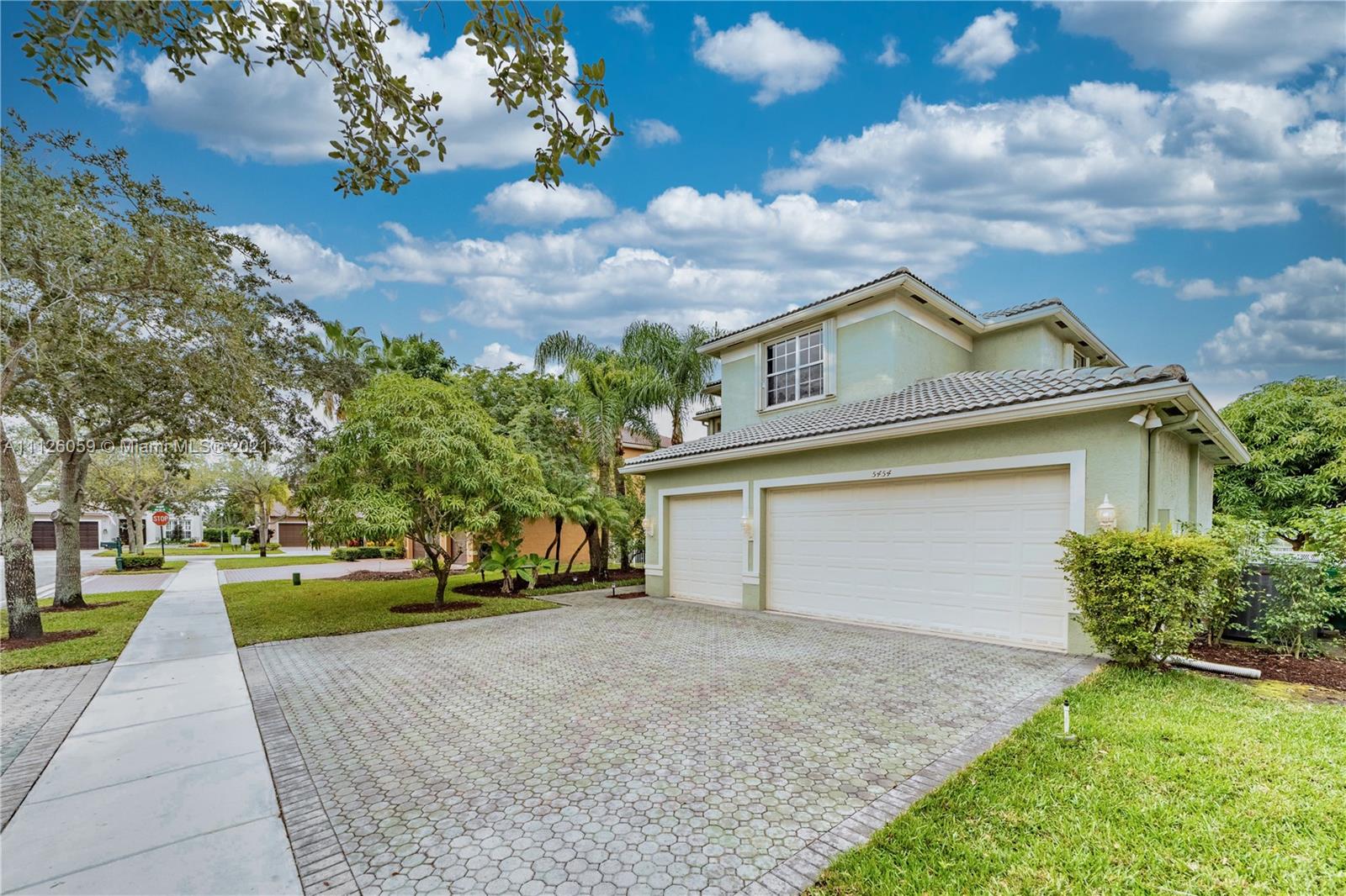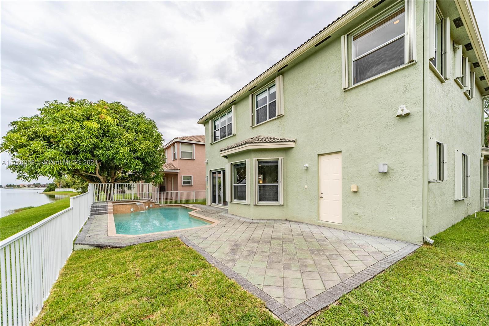 Once in a life time!!! Come and relax in your resort style backyard w/ a beautiful pool and spa with waterfall and feel like you're on your own private island! Beautiful lake views from your pool. Many builder upgrades. This 5 bdrm/+ den/4.5 bathroom (6 rooms in total). Home features stainless steel GE Profile appliances, built in surround sound wiring for your own home theatre, Cat 5 wiring for ethernet, wood kitchen cabinets with crown molding and granite, jacuzzi tub in master bath, bamboo flooring through out 2nd floor, tile though out 1st floor, full service laundry room located on the 2nd floor, and pool control panel inside the house. Recently upgraded with two new Trane ac units, new sprinkler system, water heater and washer and dryer. Property has two exotic mango trees to enjoy!