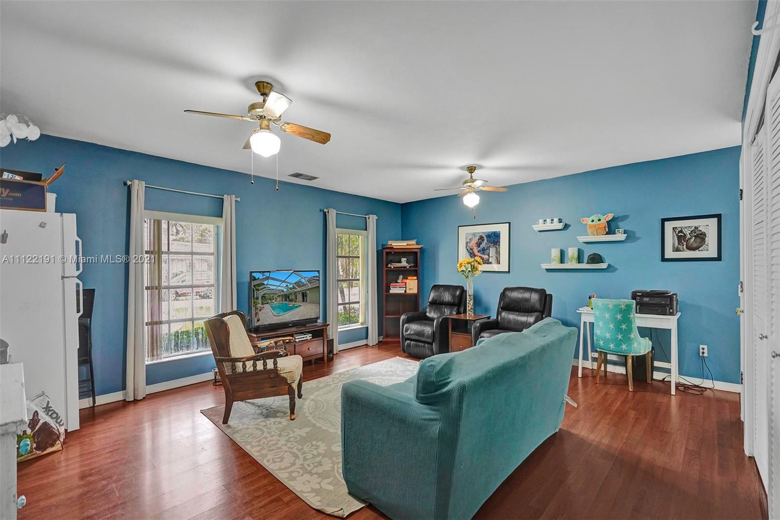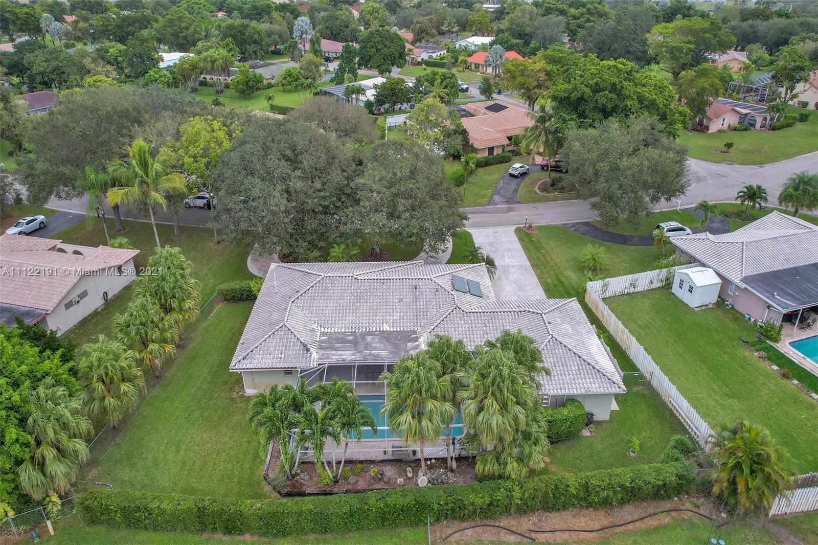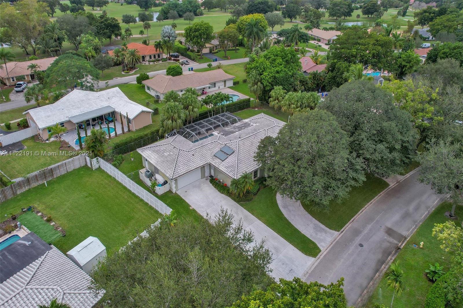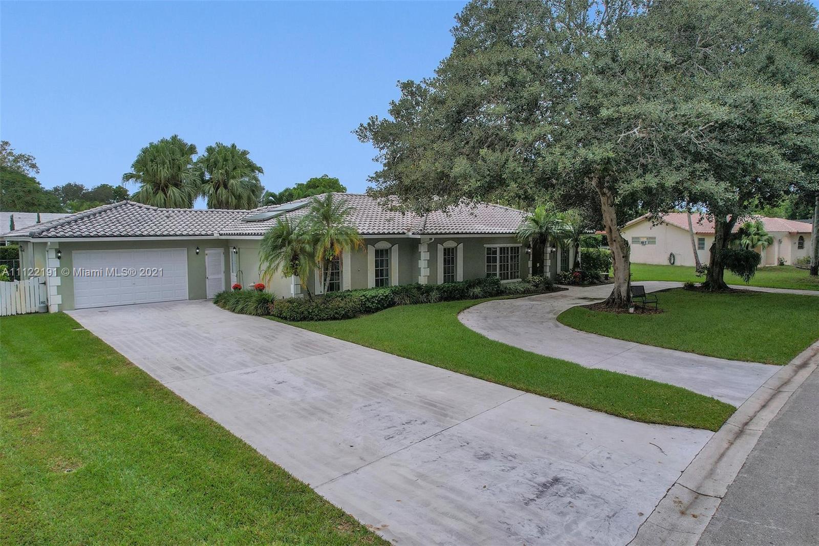 OPEN HOUSE 11/21 1-4pm-Welcome home to this rare gem in Coral Springs Country Club! Situated on over 1/3 acre featuring a 4-car garage unlike anything in the area! Driving up to the home you are welcomed by 2 mature canopying trees, the most charming curb appeal, a circular driveway for 7-8 cars & a secondary driveway with space for up to 10 cars! Featuring 2 spacious Primary bedrooms, triple-split floor plan, updated bathrooms & kitchen, bar area, newer appliances, solar option Lochinvar 120gal water heater, attic fan, panel shutters & more! Relax or entertain poolside under your reinforced covered patio, extended pool deck w/ KoolDeck flooring, featuring '16 marcite/coped pool & '16 screen pool enclosure. Filled with many great features & upgrades, ready for you to update to your taste!