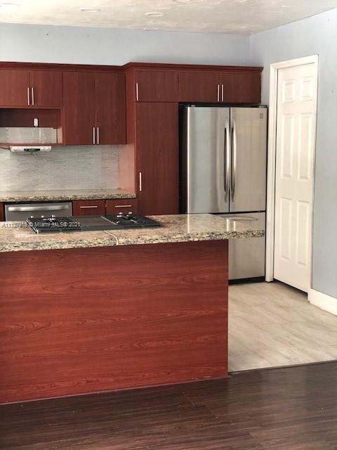 Great Neighborhood for your family to call home. The house backs up to Miramar PINELAND Park. "This ecologically and historically significant site combines the amenities of a regional park with the passive recreational opportunities of a nature center or natural area." This provides a private back yard while you relax by the pool that has a child pool fence. The circular driveway and two car garage provides loads of parking for family and guests. As you enter this well maintained home you will be impressed with the huge family room. All the bedrooms have large closets. The large master suite has a walk in closet and a large master bath with a tub and separate shower. The kitchen has a gas stove, granite counters and looks out onto the pool.