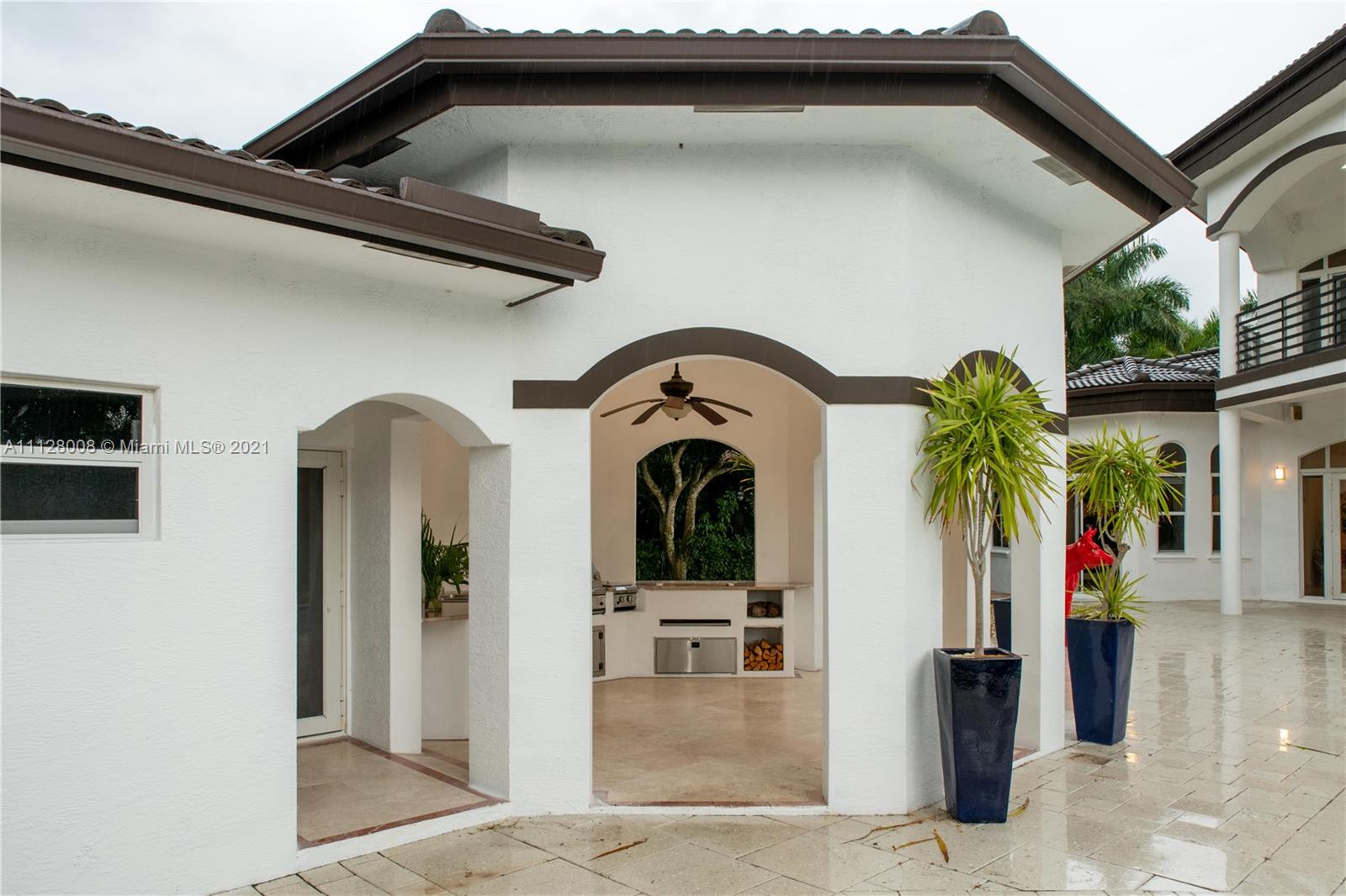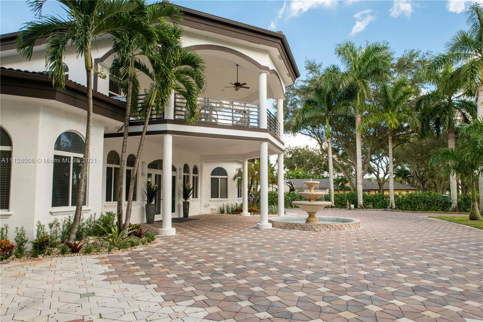 This architecturally stunning 6B+4B (7,598 sf | 1 acre lot) 2014 home displays exquisite sophistication & thoughtful details throughout. This Modern home, seamlessly combines a traditional w/ a modern twist, creating a balance that boasts comfort, natural light, & warmth. From the moment you enter you are greeted with soaring 31 foot high cedar ceilings, and a one of a kind exquisite granite and wrought iron staircase. Family room excels in designer soffit ceilings and fireplace to offer a large social gathering space around an elegant Chef Kitchen w/ stunning Calacatta countertops on display. A wine glass room backed by a large, elegant island with 4 chrome pendant lights over the sink that illuminate the bright gray design of this kitchen and provides space for cooking and entertaining.