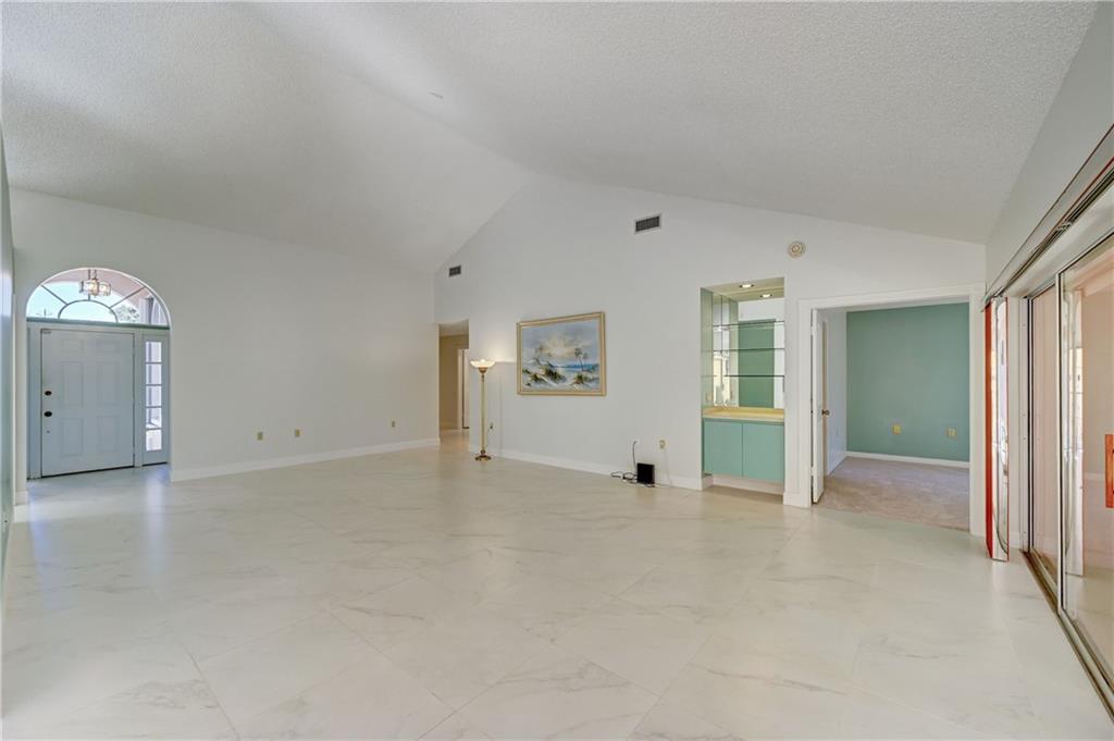 Lovely single family home located in gated community of Saratoga Bay. The home offers a spacious, open floor plan which boasts plenty of bright natural light and cathedral ceilings. The interior has been freshly painted with new, neutral carpet installed in bedrooms. Ceramic tile throughout the living area. Enjoy relaxing or entertaining on the covered, screened in patio with private backyard and lots of green space. This home is waiting for you to call it your own! HOA INCLUDES: Security System Basic Monthly Monitoring. Monthly Water and Sewerage. Xfinity/Comcast High Speed Internet & Basic Cable TV, (Additional Services are the responsibility of the homeowner). Landscape Services. The Association pays Monthly Monitoring Fee. Accordion Shutters for added security and storm protection.