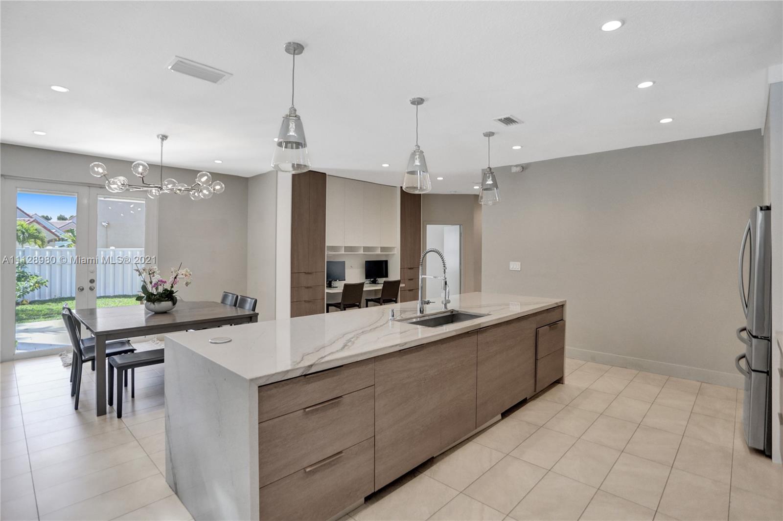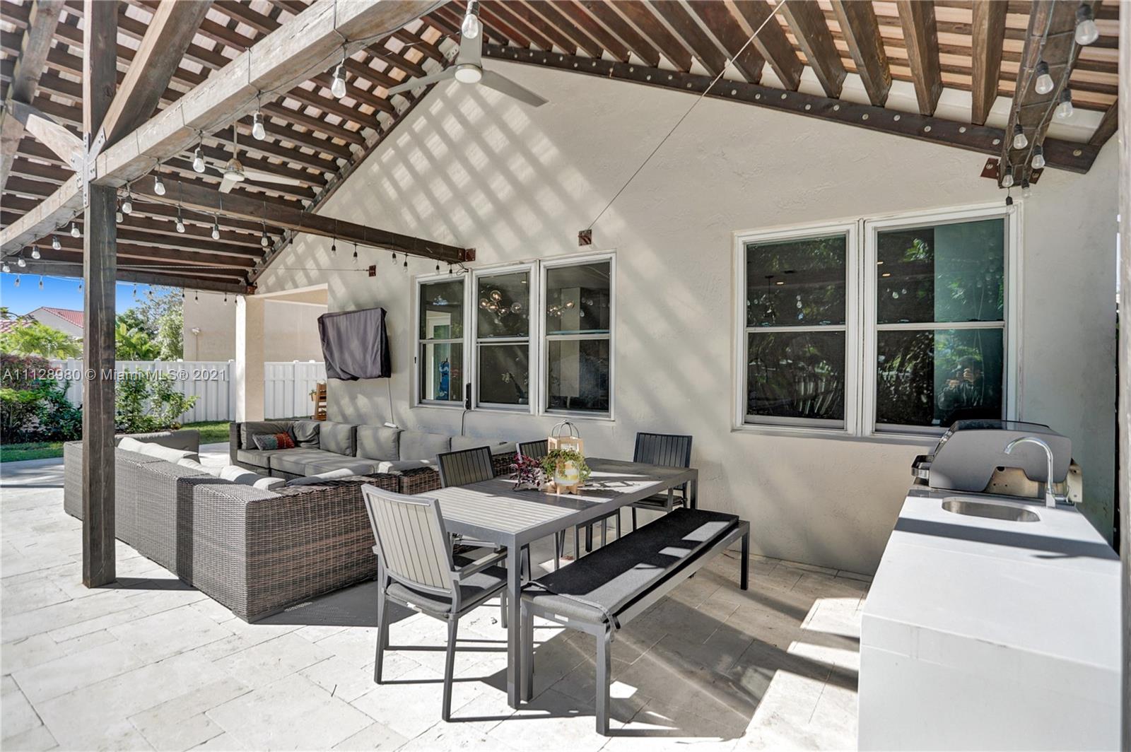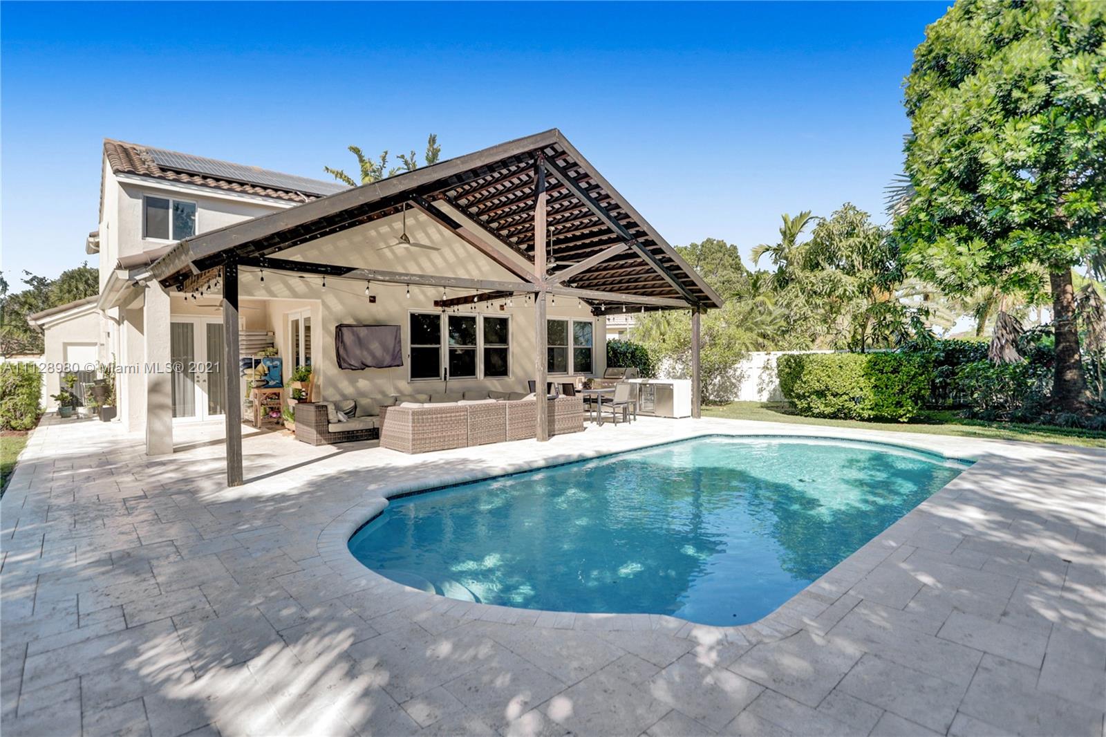 STUNNING & MOVE-IN ready two story home located in "The Falls" on a premier, oversized cul-de-sac lot! This 5 bedroom, 3 1/2 bath home with a spacious floor plan has been beautifully remodeled with only the finest of finishes! Numerous features include: absolutely gorgeous kitchen with large center island, gas stove & top-of-the-line appliances, custom cabinets & built-ins galore, master bedroom suite with luxurious bath, laundry room with 2 washers & dryers, Tesla charger in garage, solar power & solar water/pool heaters, giant pergola perfect for entertaining & enjoying South Florida living with built-in BBQ, sink & refrigerator, custom fire pit & seating area all surrounding the pool & private backyard with lush landscaping & lighting! Hurricane IMPACT Glass & Roof is only 3 years old!