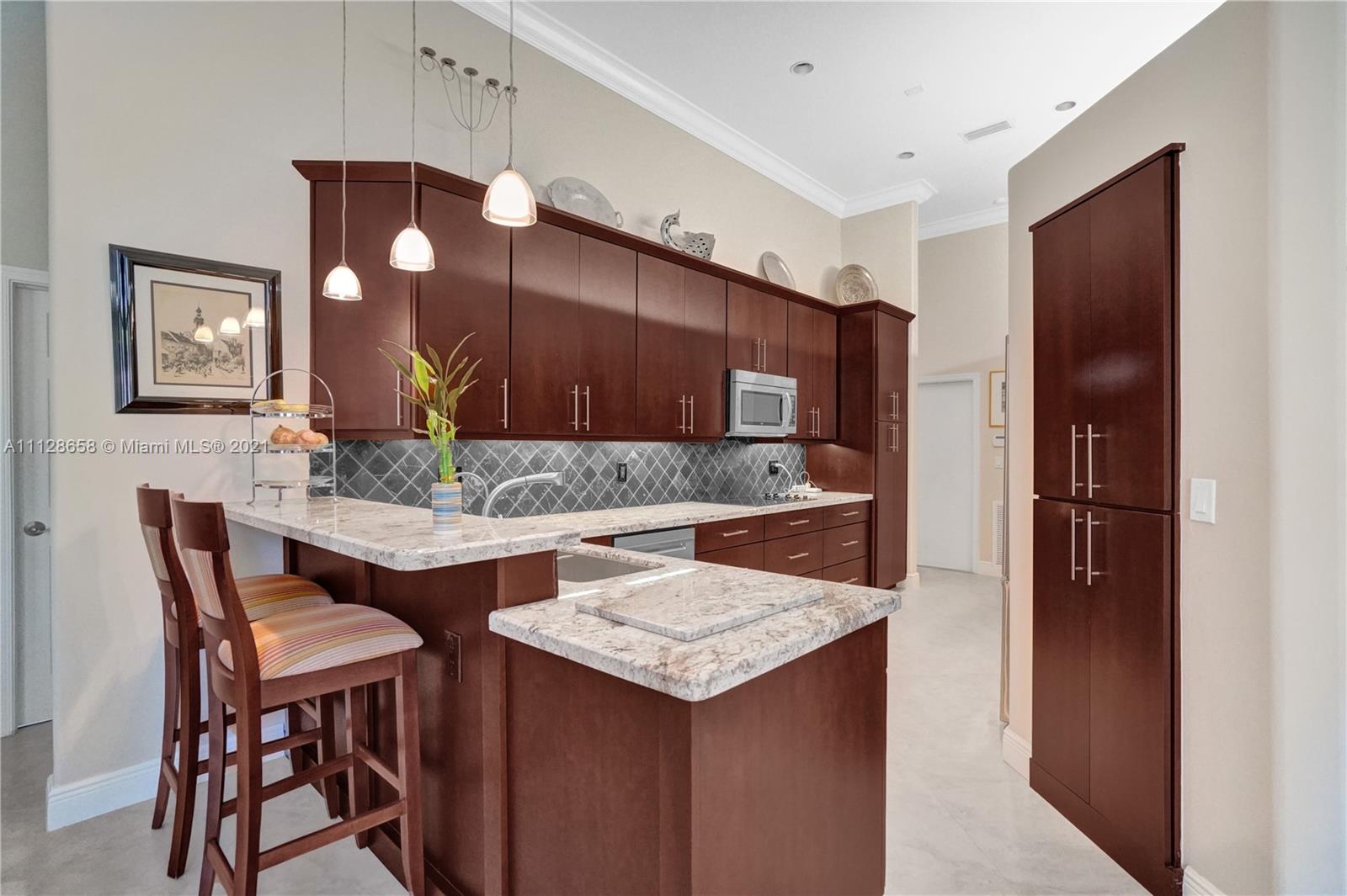 Wow! This gorgeous pool home has been completely updated. Situated on an over 11,000 sq. foot oversized corner lot in the beautiful gated community of Orchid Island. Rectified porcelain floors and volume ceilings welcome you as you enter. Modern updated kitchen and stunning modern bathrooms have special decorator touches. Beautiful screened in pool area and new pool deck for large family gatherings with lush landscaping for privacy. Newer roof. New central vacuum. Nothing in this home is original. Nothing like this on the market. This is a must see.