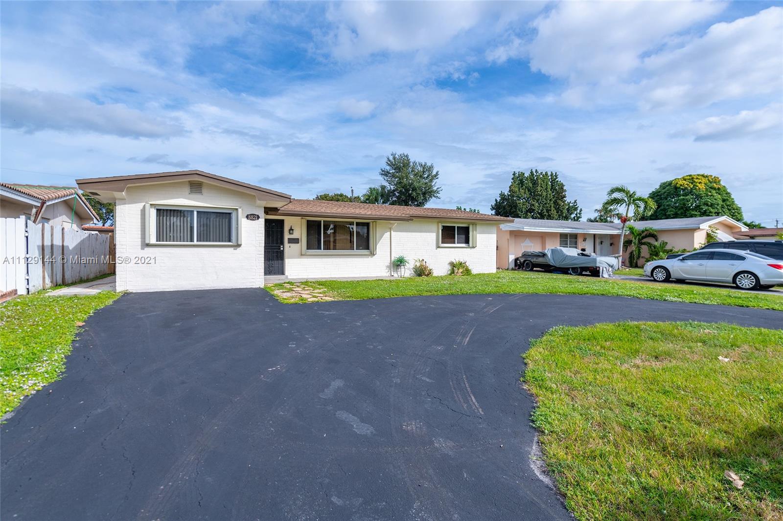 Beautiful home in a quiet and safe neighborhood in Pembroke Pines. No HOA and there is plenty of parking with this circular driveway! The home boasts upgrades such as new brand flooring in bedrooms and brand new remodeled bathrooms. It also features a newer kitchen with pantry, a newer roof (4 years old), and a newer 4-ton air conditioner. It features a bonus room that could be used as an office, mancave, playroom, etc. Tons of natural light shine throughout this home, making it a bright and peaceful space. The kitchen sink overlooks the screened in patio and a huge fenced in backyard featuring a storage shed, a firepit area, and a "she-shed" already set up with AC and wood flooring. The home comes complete with a large laundry room and is fully hurricane protected.