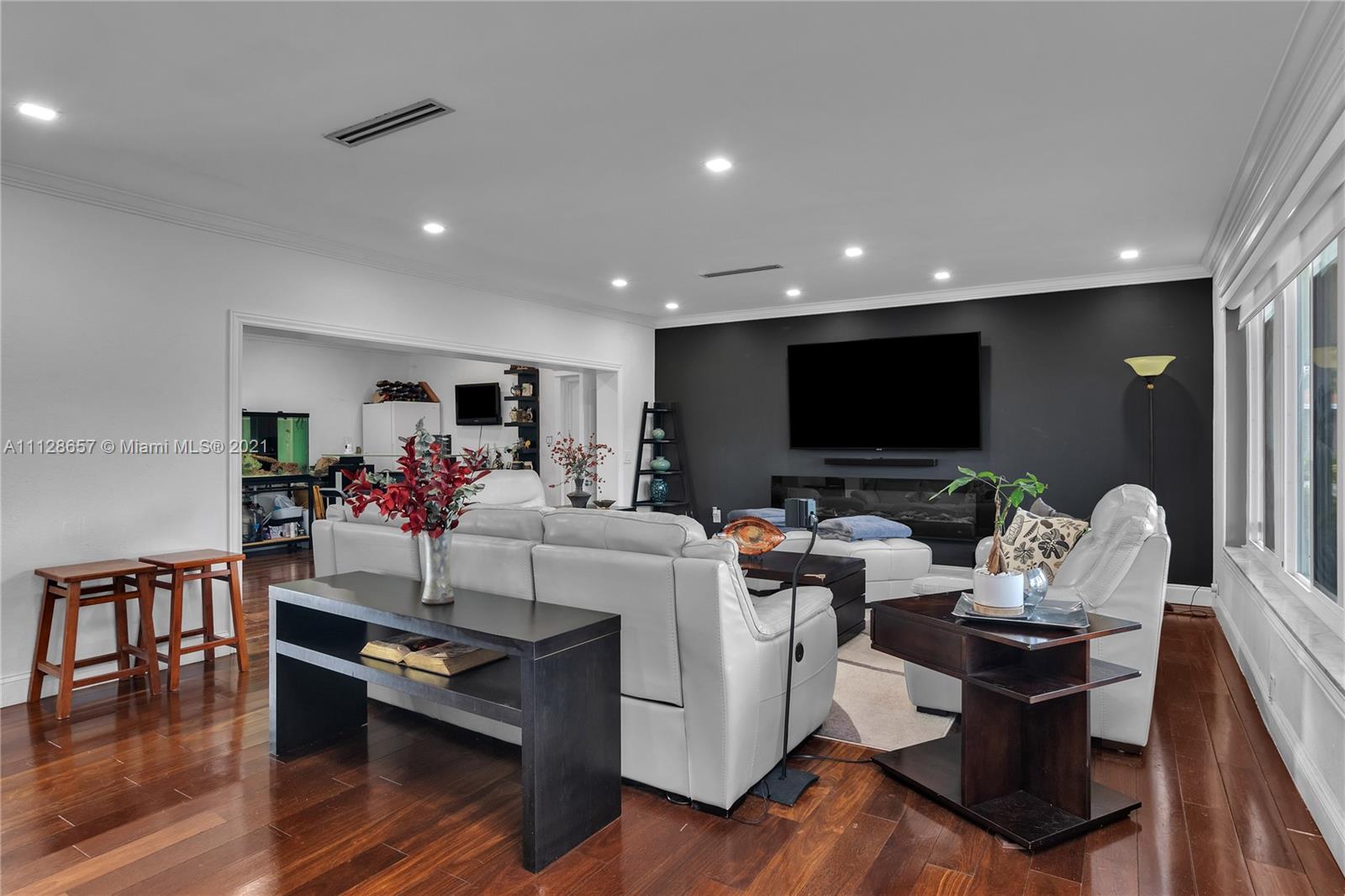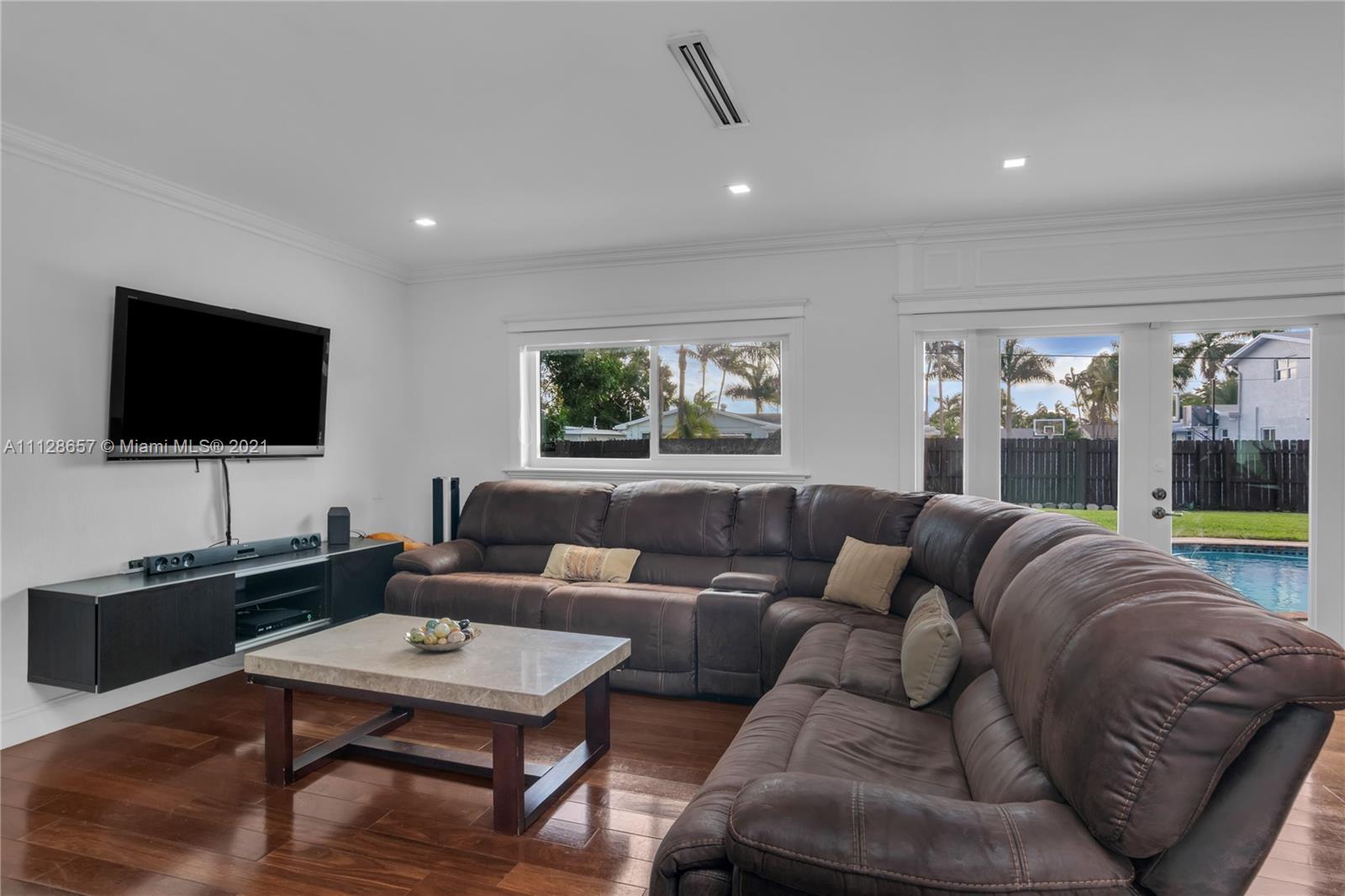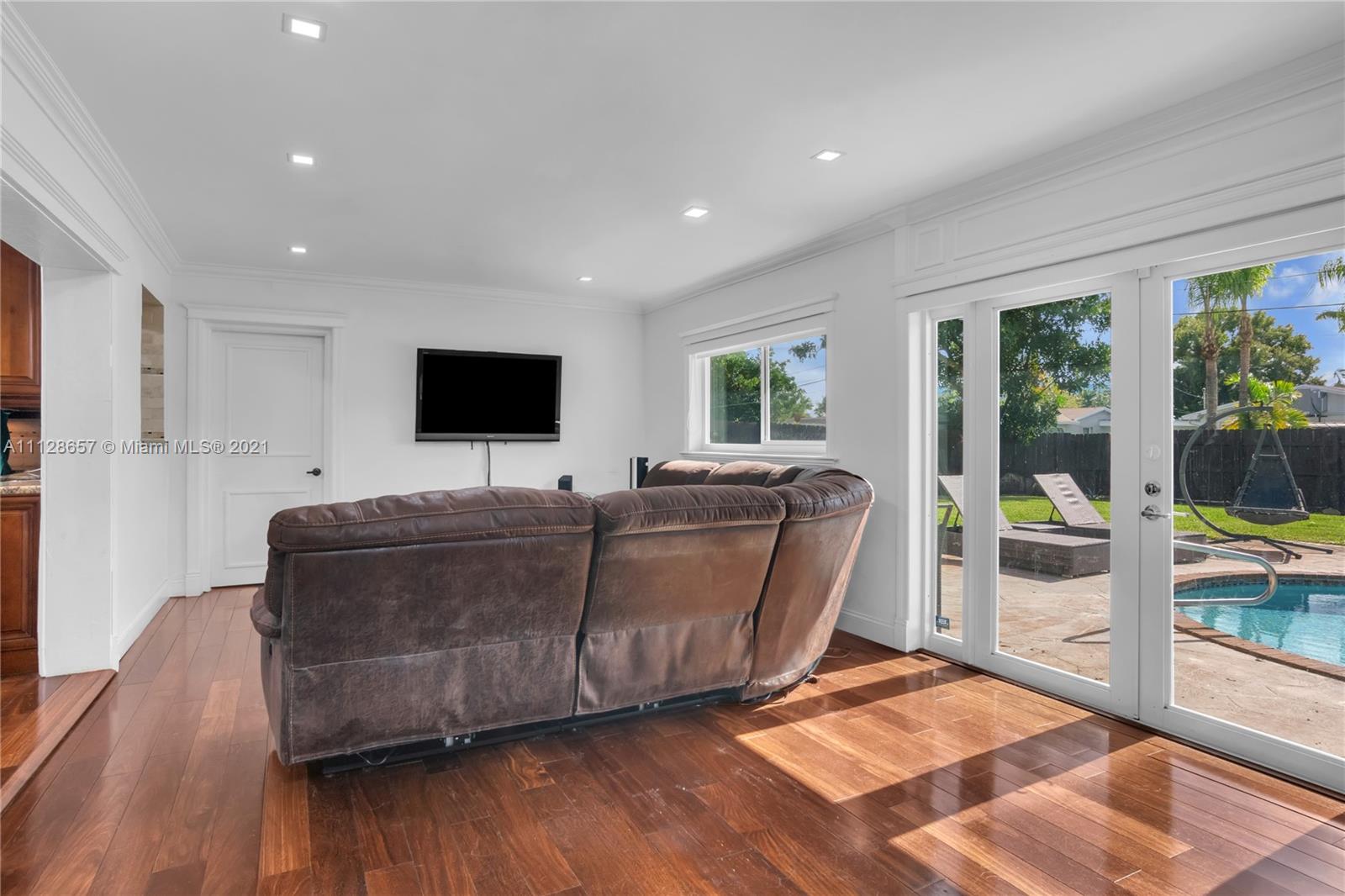 A BIT OF WONDERLAND! This is probably one of the best houses in HOLLYWOOD HILLS, with over 13,000 SQFT lot, almost 2,900 SQFT under air, OPEN FLOOR PLAN and totally updated. Featuring 4 bedrooms (2 masters), 3 bathrooms, formal dining room, 533 SQFT family room and 10 car driveway. The living area is HUGE, open and inviting w/ luxurious hardwood floors, recessed lights, crown molding and modern linear AC. vents. Luxurious open kitchen featuring top of the line wood cabinets w/ light, GRANITE COUNTER TOPS and stainless steel appliances. Storm ready with IMPACT WINDOWS AND DOORS. In addition, NATURAL GAS, 2017 roof, 2016 septic system, 2017 gas water heater, salt water pool, 2018 central air (2 zones), 2018 a/c ducts, 2018 appliances, roller shades and lush landscaping. YOUR PERSONAL PALACE!